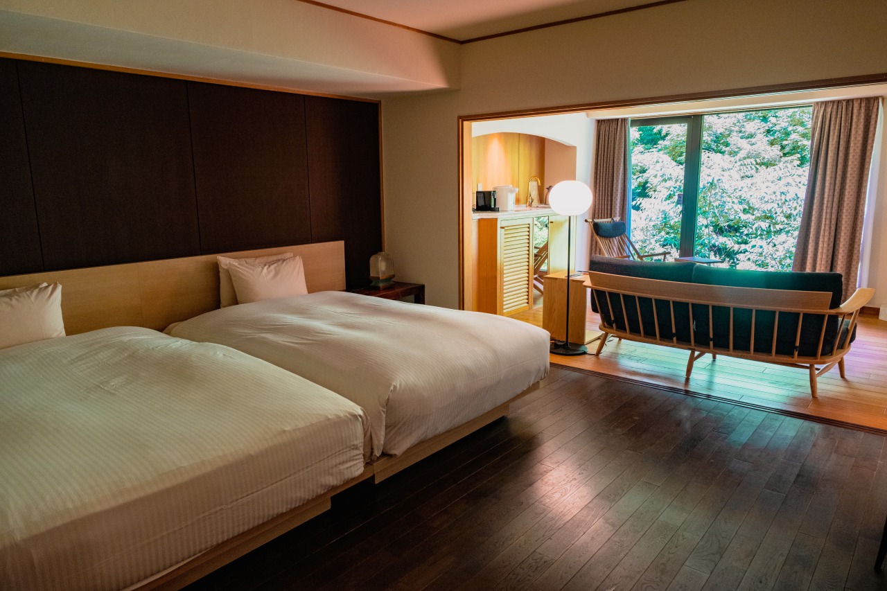 Perched at 1,050 meters above sea level, this mountain lodge quietly stands within a forest said to be home to the gods. Relax and enjoy our cuisine featuring seasonal ingredients from Shinshu, and our baths that offer a sense of oneness with the great outdoors.
