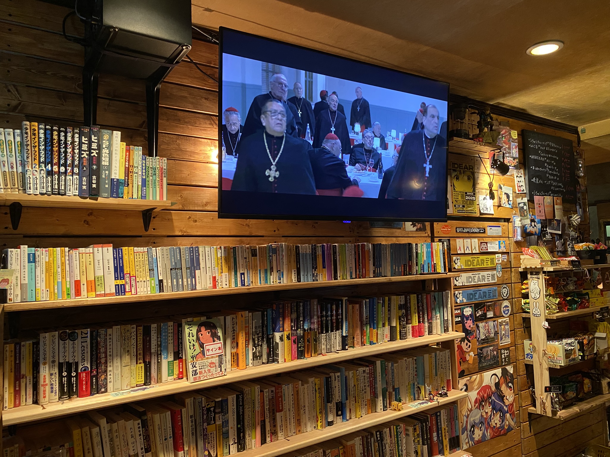 The athmosphere is relaxing an lovely, there are games, artworks, books (including mathematic books) and manga on display.