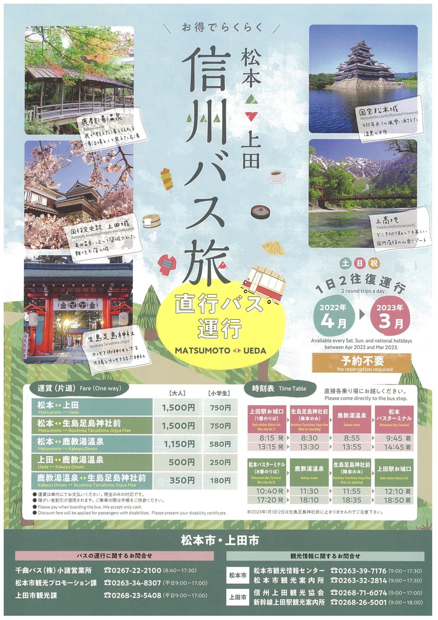 | 松本バスターミナル~生島足島神社前 | 1,500円 |
