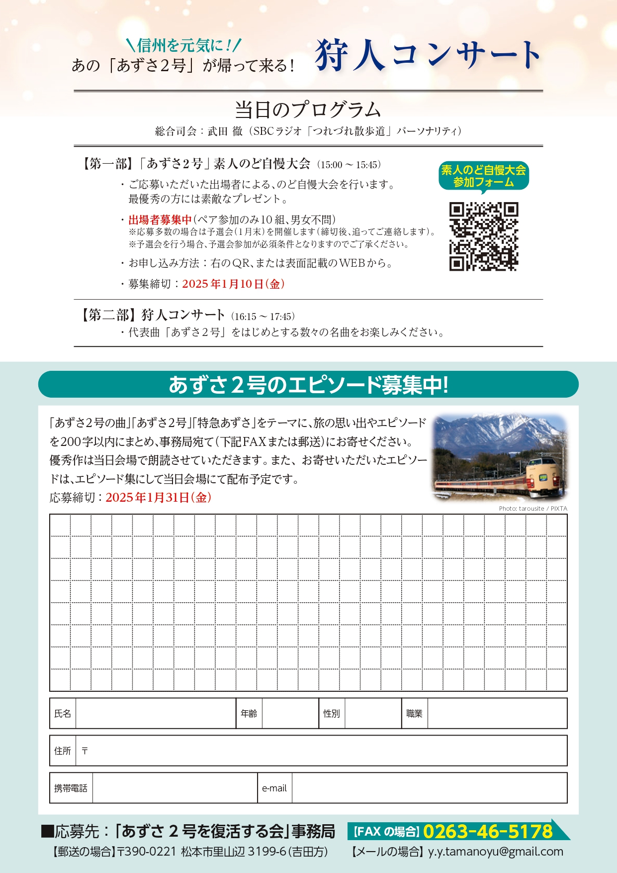 あの「あずさ2号」が帰って来る!狩人コンサート