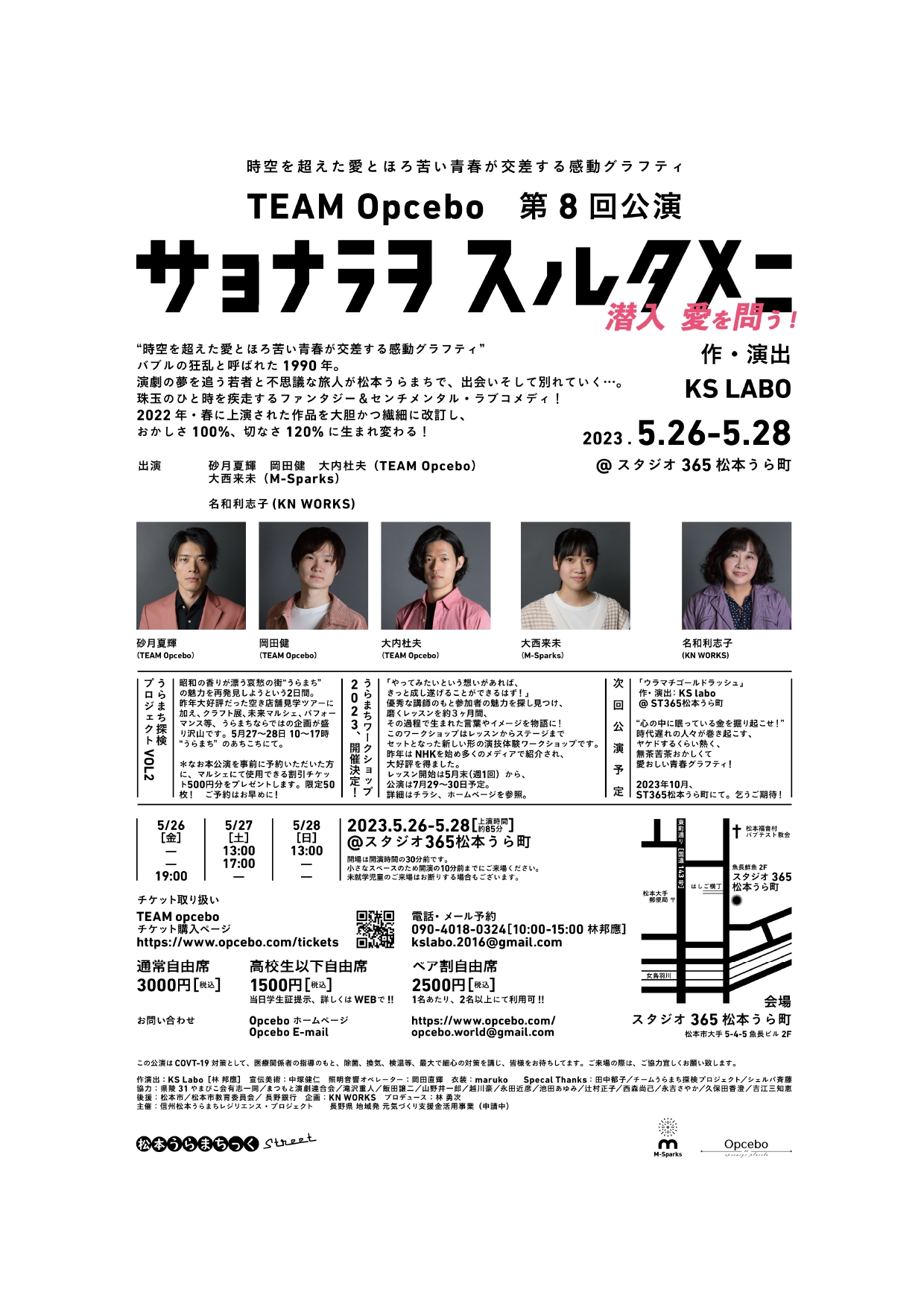 うらまちレジリエンスの一つの大きな取り組みとして演劇があり、小劇場のある町を目指して活動に協力いただいた TEAM Opcebo. に今回の三日間も演劇をしていただきます。