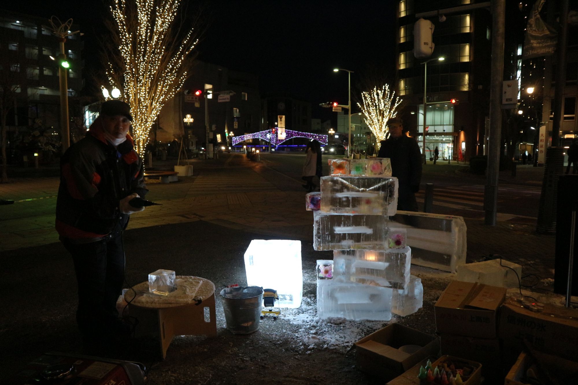 今年は松本駅前広場に大迫力の氷彫芸術「国宝 旧開智学校校舎」が出現!