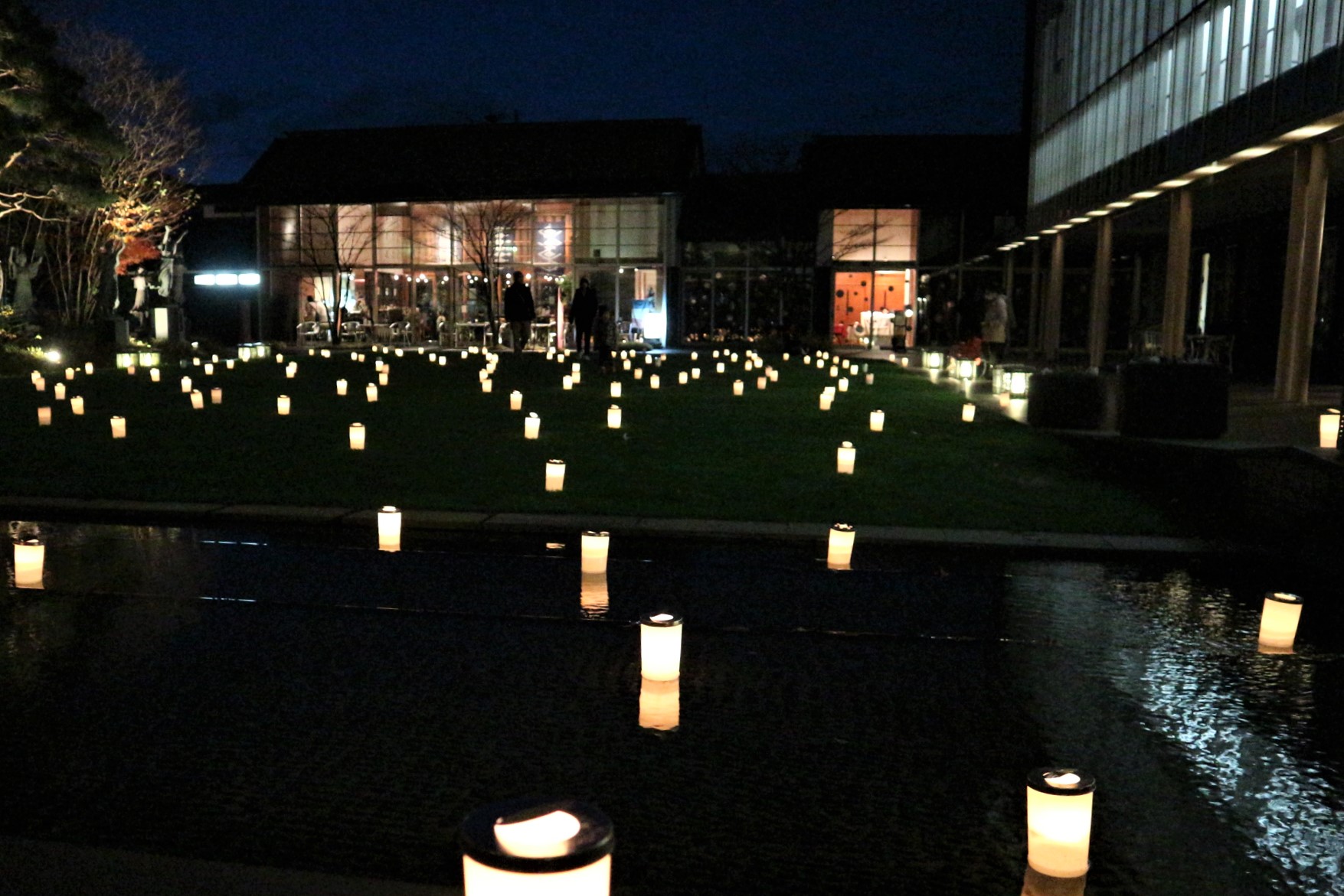 ☆美術館ガラス面の草間彌生作品《松本から未来へ》のライトアップ