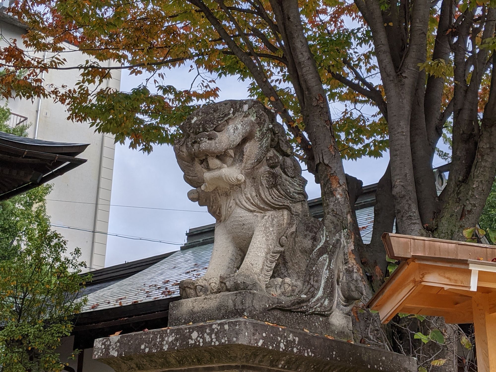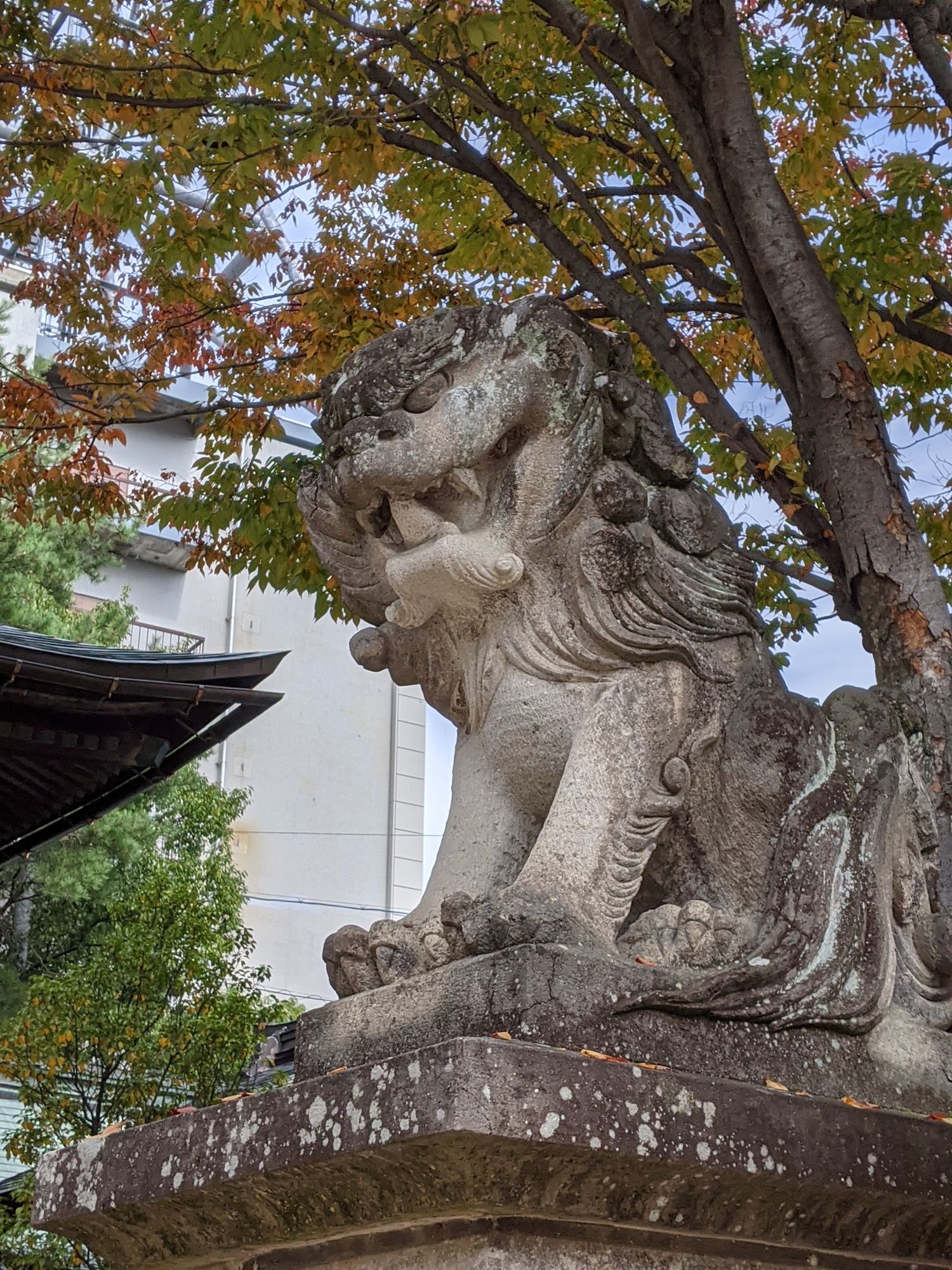 En effet, on retrouve sur ces statues une longue chevelure entourant le visage et retombant jusqu’au socle (la base de la statue). Une caractéristique propre aux statues de Matsumoto et de ses environs. C’est la différence principale entre les statues que l’on trouve ici et les autres statues du pays. On les retrouve généralement par pair à la fin de l’allée menant au temple principal et sont appelés les « Komainu ».
