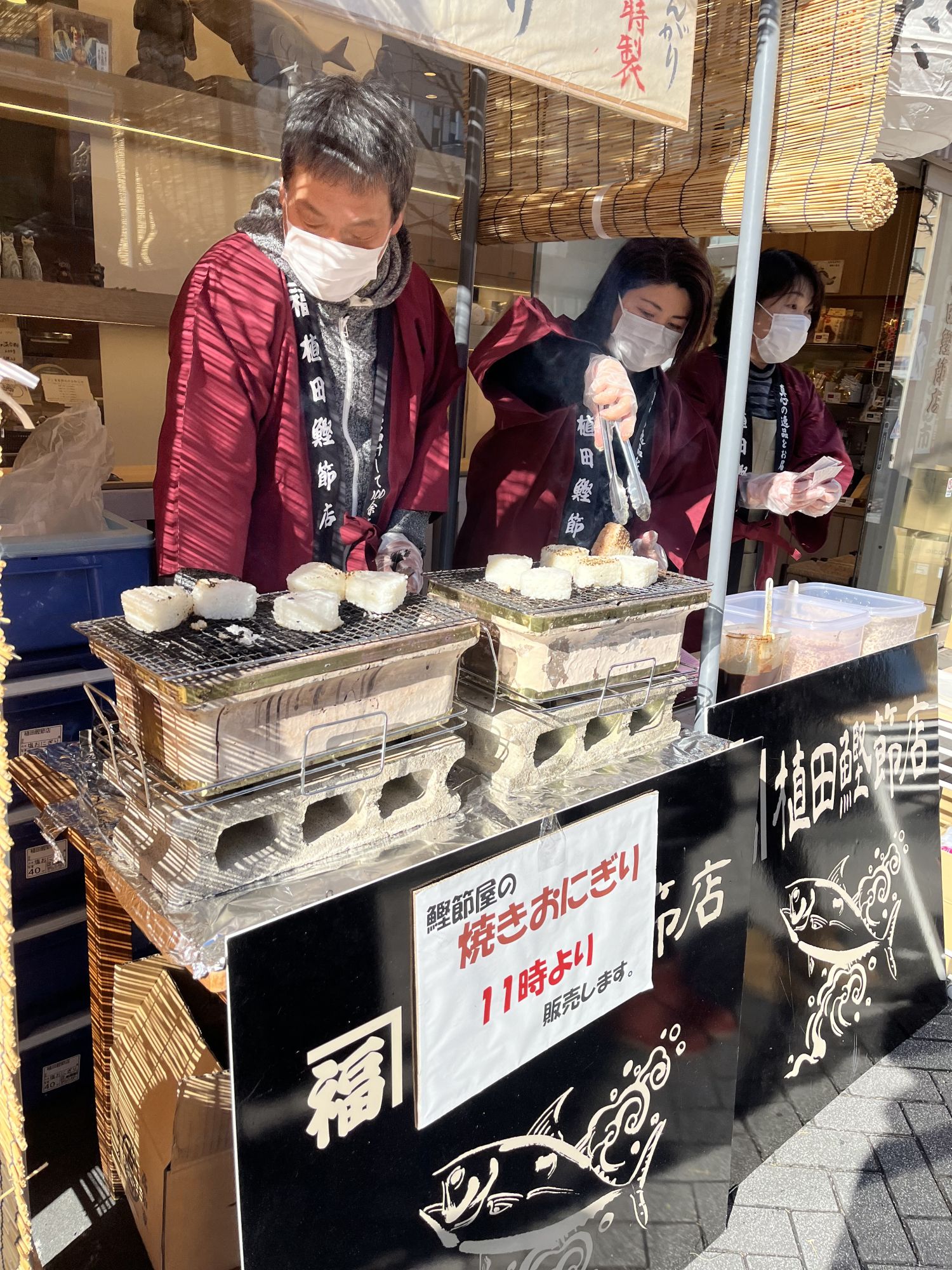 Les stands de nourriture sont abondant et en plus des stand de matsuri habituels on peut profiter des bons plats des boutiques ou cafés qui ont ouverts des stands pour l’occasion. Nous avons dégusté de délicieux yaki-onigiri, boulettes de riz grillés recouverts de flocons de bonite.