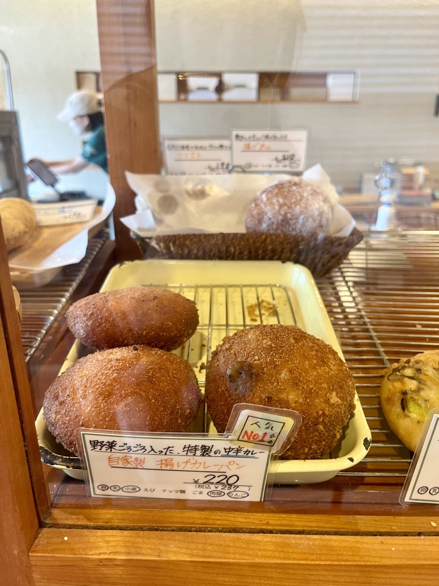 Pour le déjeuner, vous trouverez de nombreux sandwichs et petits pains salés, ainsi que leur produit le plus populaire : le beignet au curry, surtout quand il est encore chaud.