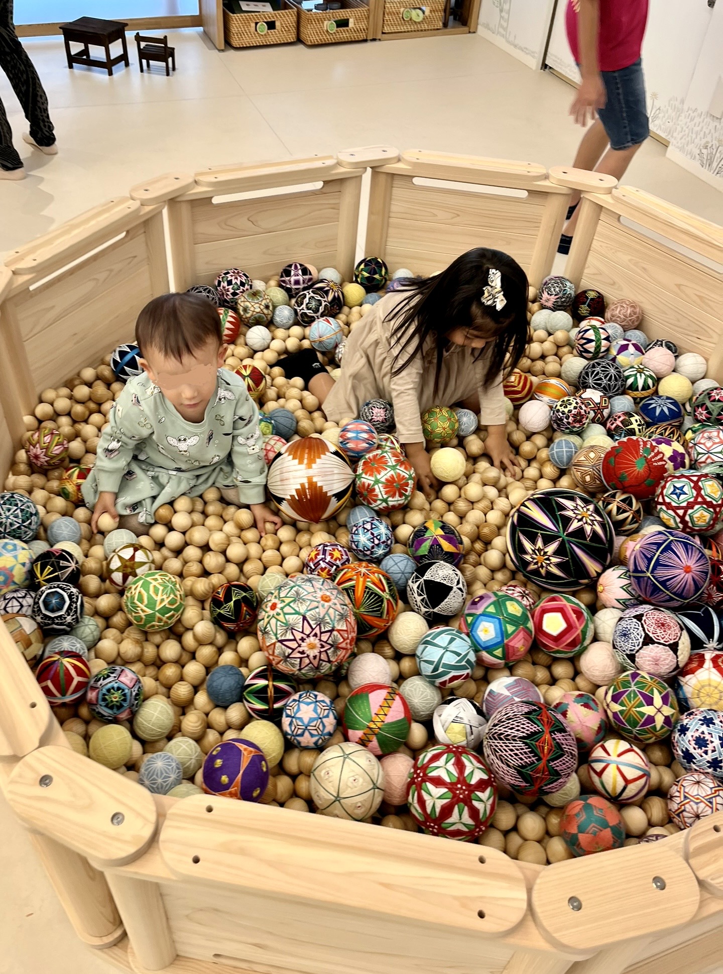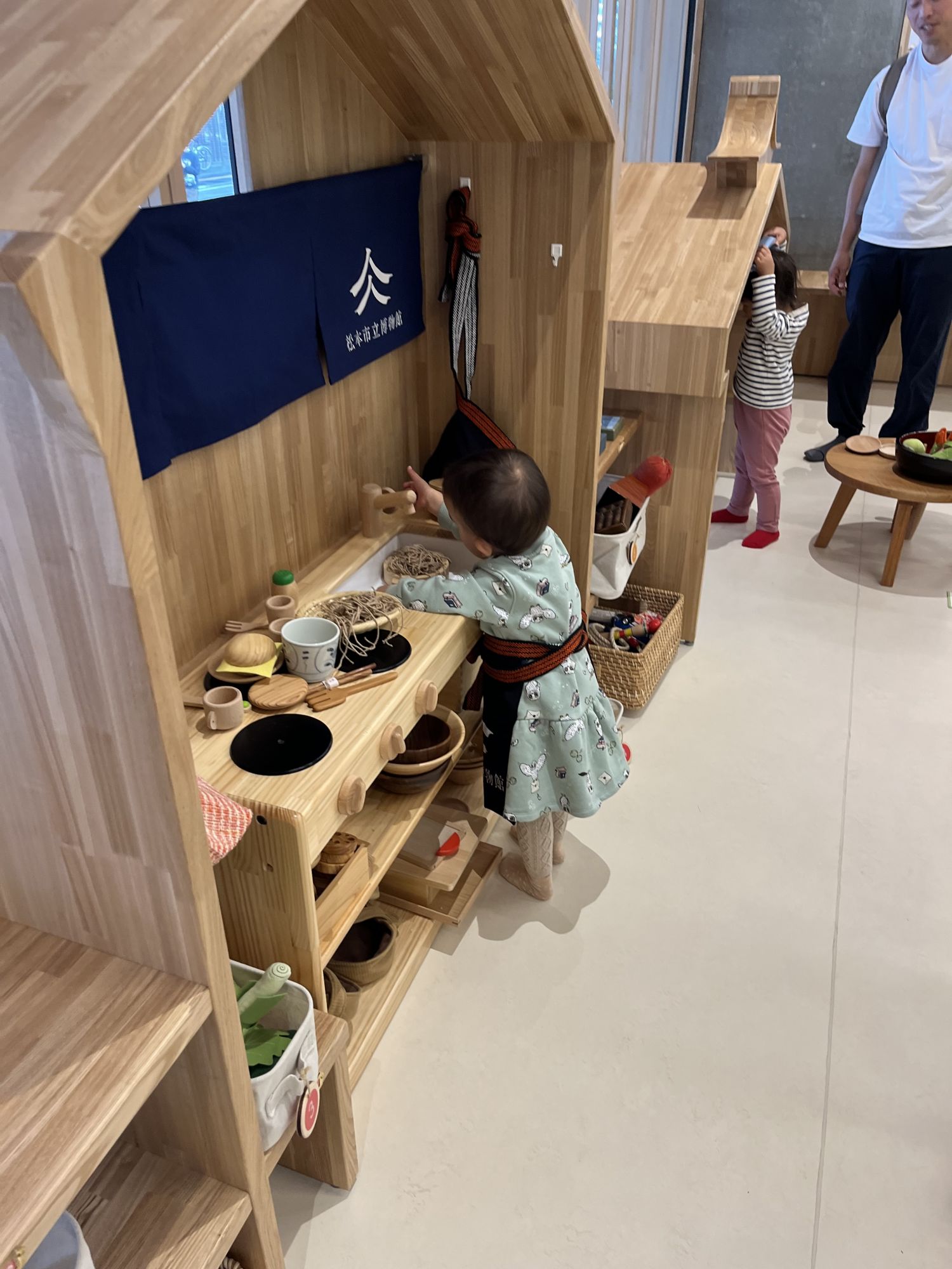 Pour cela, le rez-de-chaussée du musée propose un auditorium qu’il est possible de réserver pour organiser des séminaires, conferences ou une salle de reunion qui peut accueillir des ateliers. Une grande aire de jeu, « Asobiba », gratuite et ouverte pour tous les enfants jusqu’à le fin de la primaire. On y retrouve un espace cuisine mais avec de quoi préparer des sobas, une piscine de boules en bois et de balles temari, les traditionnelles balles tissées de la ville, un grand plateau représentant toute la région de Matsumoto avec des petites maisons, des véhicules à placer à son gré. Si vous vous baladez en famille, cet espace peut vous offrir une pause au cœur de vos visites tout en offrant à vos enfants une approche ludique de la ville et de sa culture.