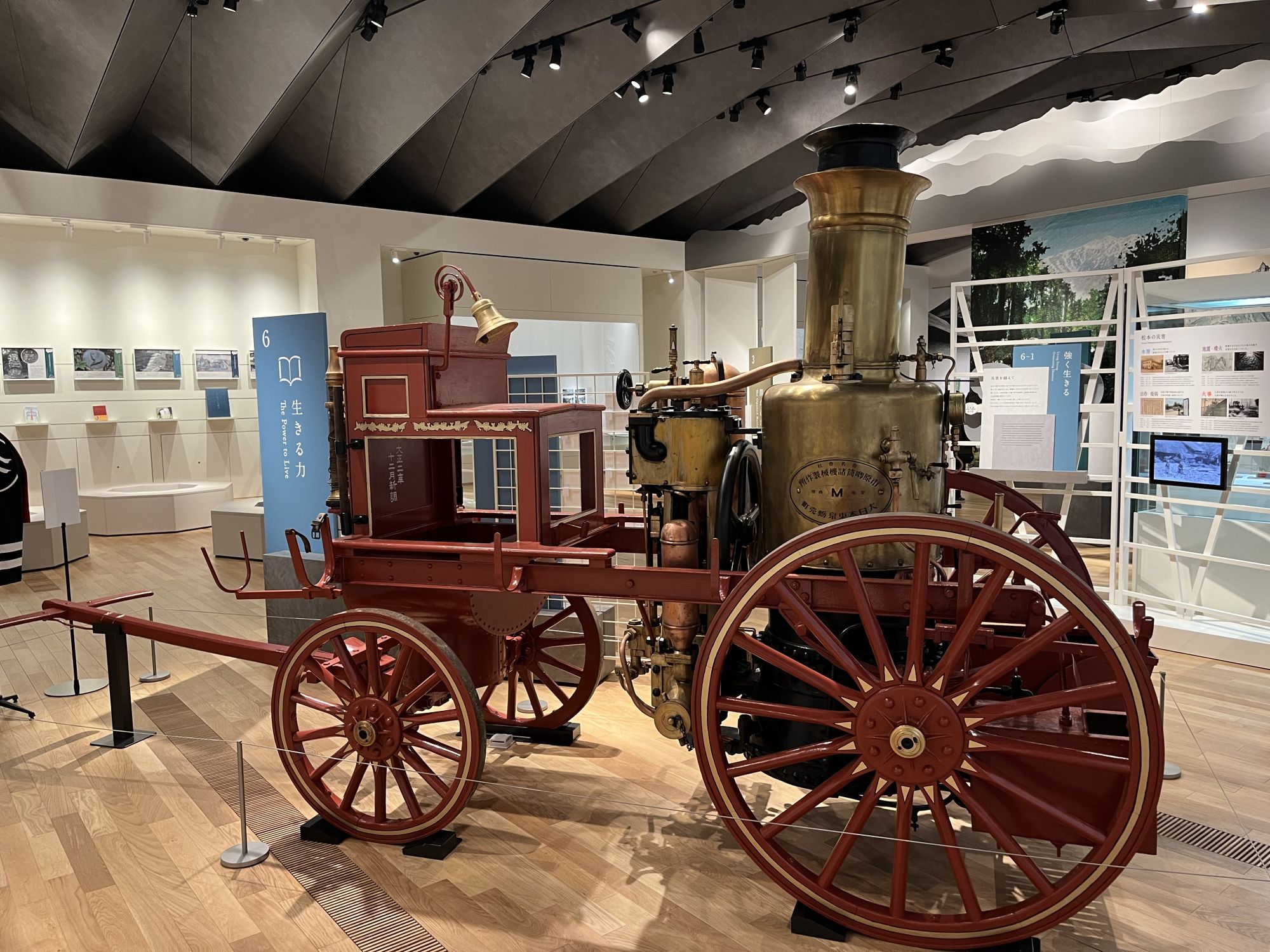 Le deuxième et le troisième étages sont réservés aux expositions. Le deuxième étage propose des expositions temporaires et la toute première exposition « EXPO MATSUMOTO » a pour thème la premiere grande exposition qui a eu lieu a l’ère Meiji au chateau de Matsumoto. Si les grandes lignes de l’histoire sont proposées en anglais, l’exposition manque toutefois d’explications plus détaillées en anglais.