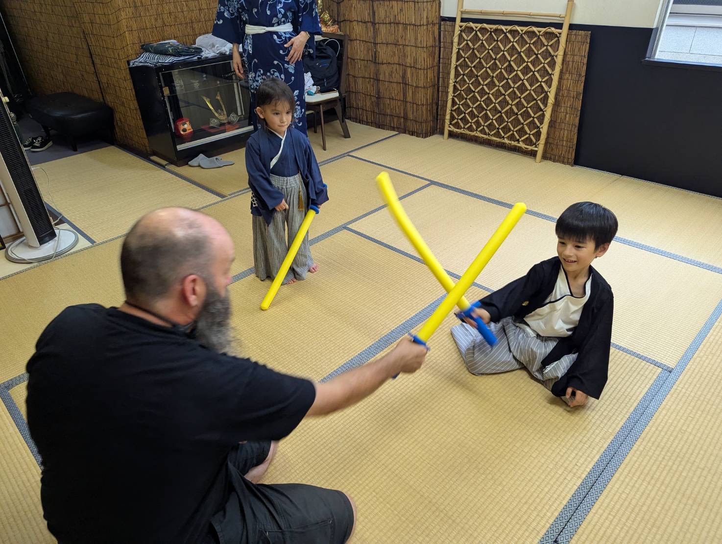Ce que j’ai particulièrement apprécié, en tant que maman, c’est l’attention portée aux enfants. Pendant que les adultes enfilent leur kimono et apprennent les gestes, les plus petits peuvent s’amuser avec des sabres en mousse, en toute liberté. Cela rend l’activité accessible à toute la famille, sans stress.