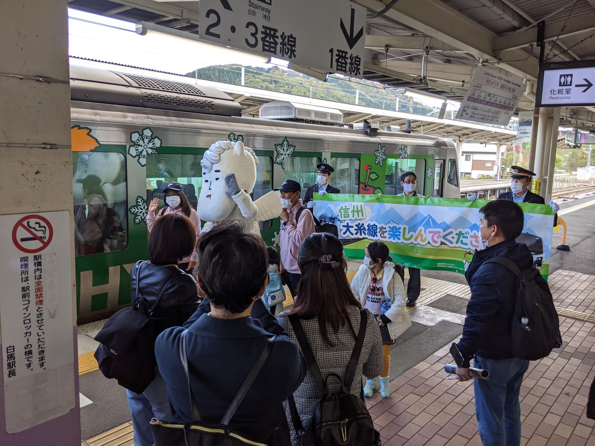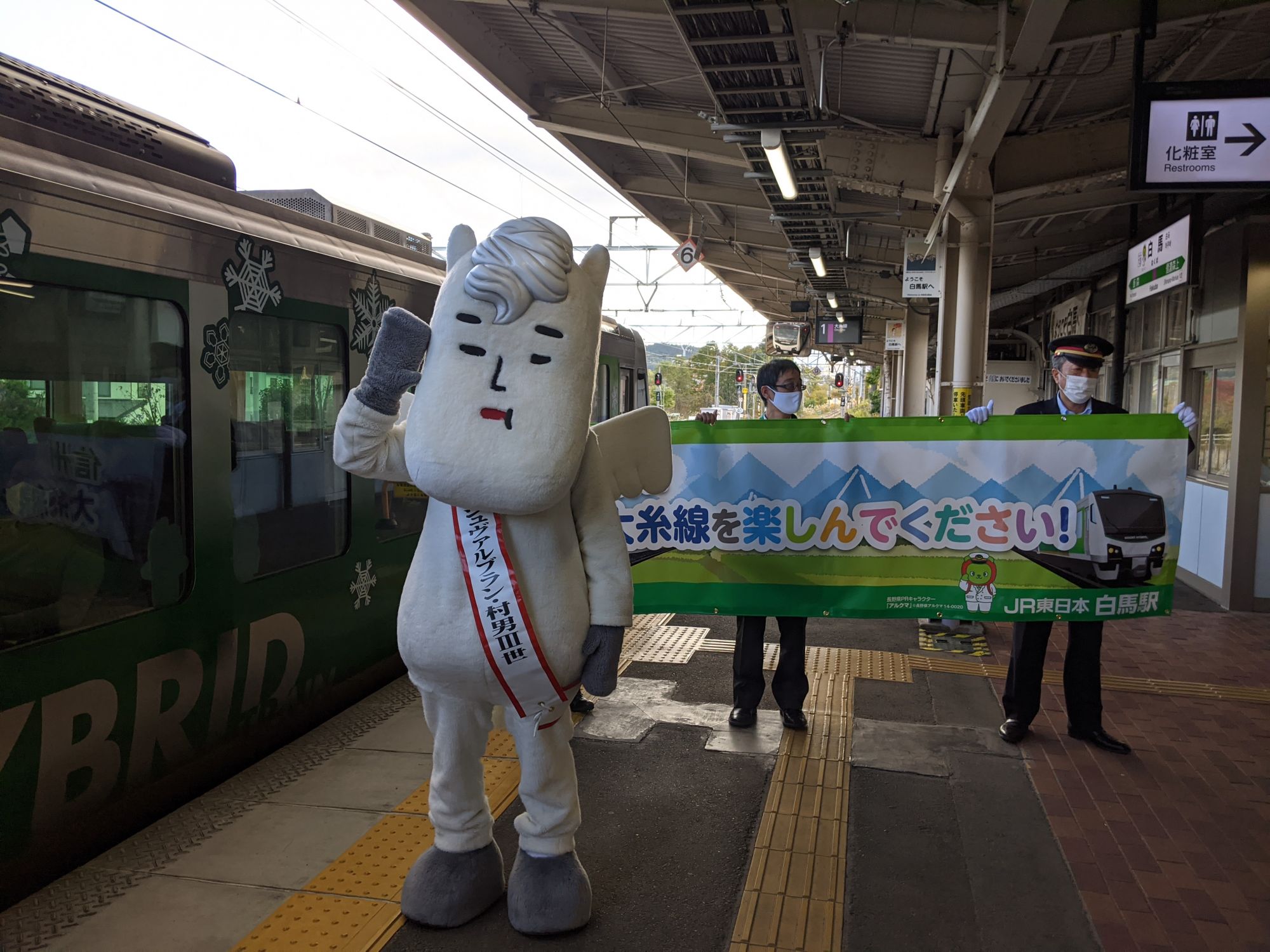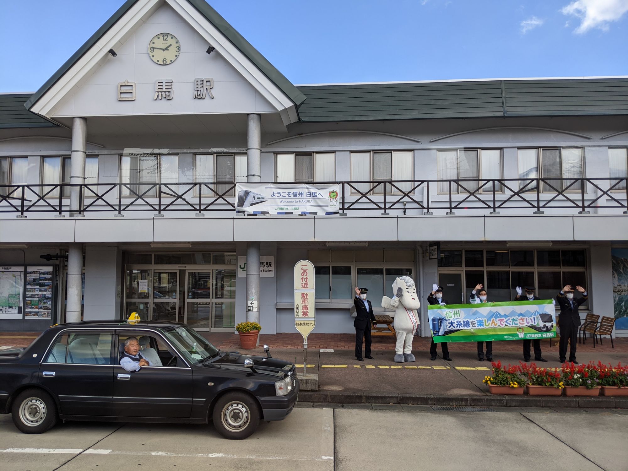 En arrivant à la Gare de Hakuba, nous avons été accueillis par la mascotte de la ville ! La Vallée de Hakuba est très connue pour ses nombreuses stations de skis qui attirent les fans de poudreuses chaque année. Mais c’est également le lieu de départ idéal pour tous les fans de randonnées et les amoureux de nature.