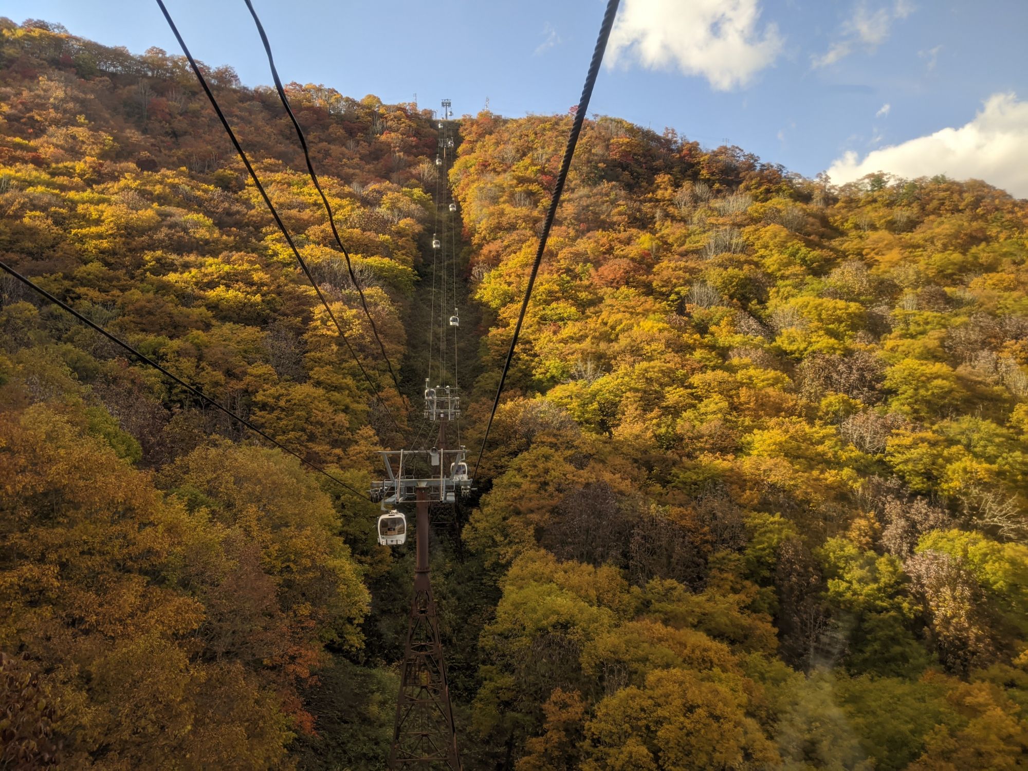 De la gare, la station de Iwatake est facilement accessible en bus. Vous pourrez y prendre la télécabine afin de vous rendre au sommet de la montagne. De là, une vue époustouflante vous attend. Nous avons eu la chance d’arriver en plein cœur de la saison automnale pendant laquelle nous avons pu profiter pleinement du spectacle offert par les couleurs automnales.