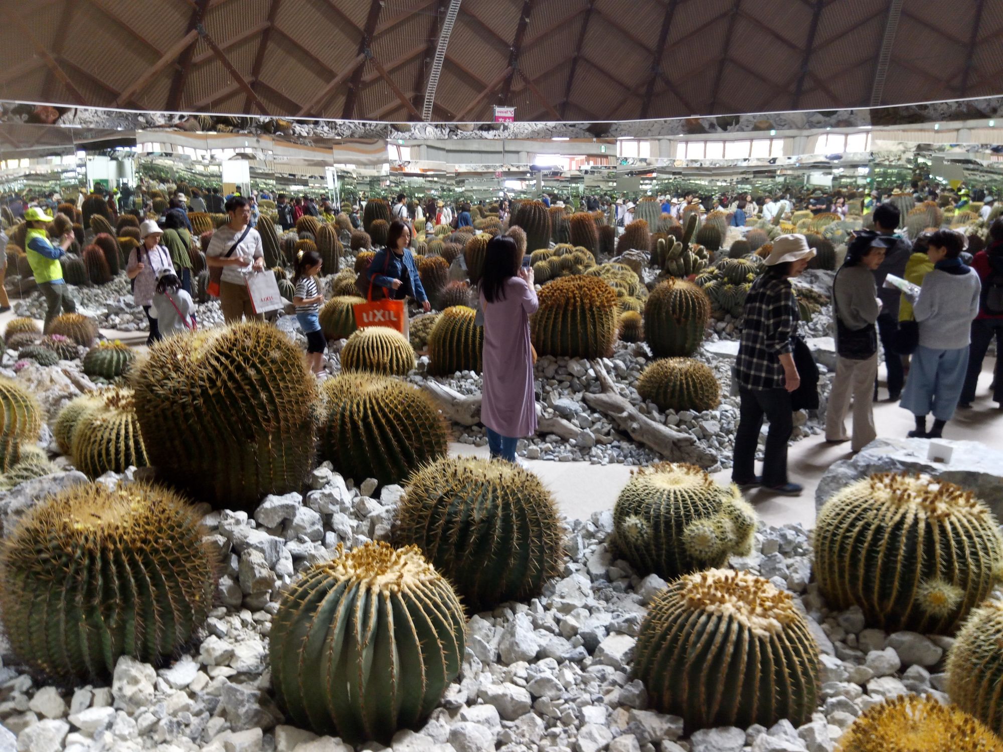 Dans le Dôme, Nishihata Seijun, chercheur de plantes, a crée un jardin de cactus avec l’aide de nombreux volontaires. Il s’inspire de la très célèbre Yayoi Kusama (pour plus de détails, voir ce lien), artiste d’art contemporain originaire de Matsumoto, et de sa fameuse œuvre Infinity Pumpkin ; les miroirs présents donnant l’impression d’un champ qui s’étend à l’infini. On trouve également dans le Dôme de nombreuses autres animations et événements, comme un spectacle de danse ou bien encore un concert de Taiko, où les spectateurs peuvent également participer activement en jouant eux-même du Taiko.