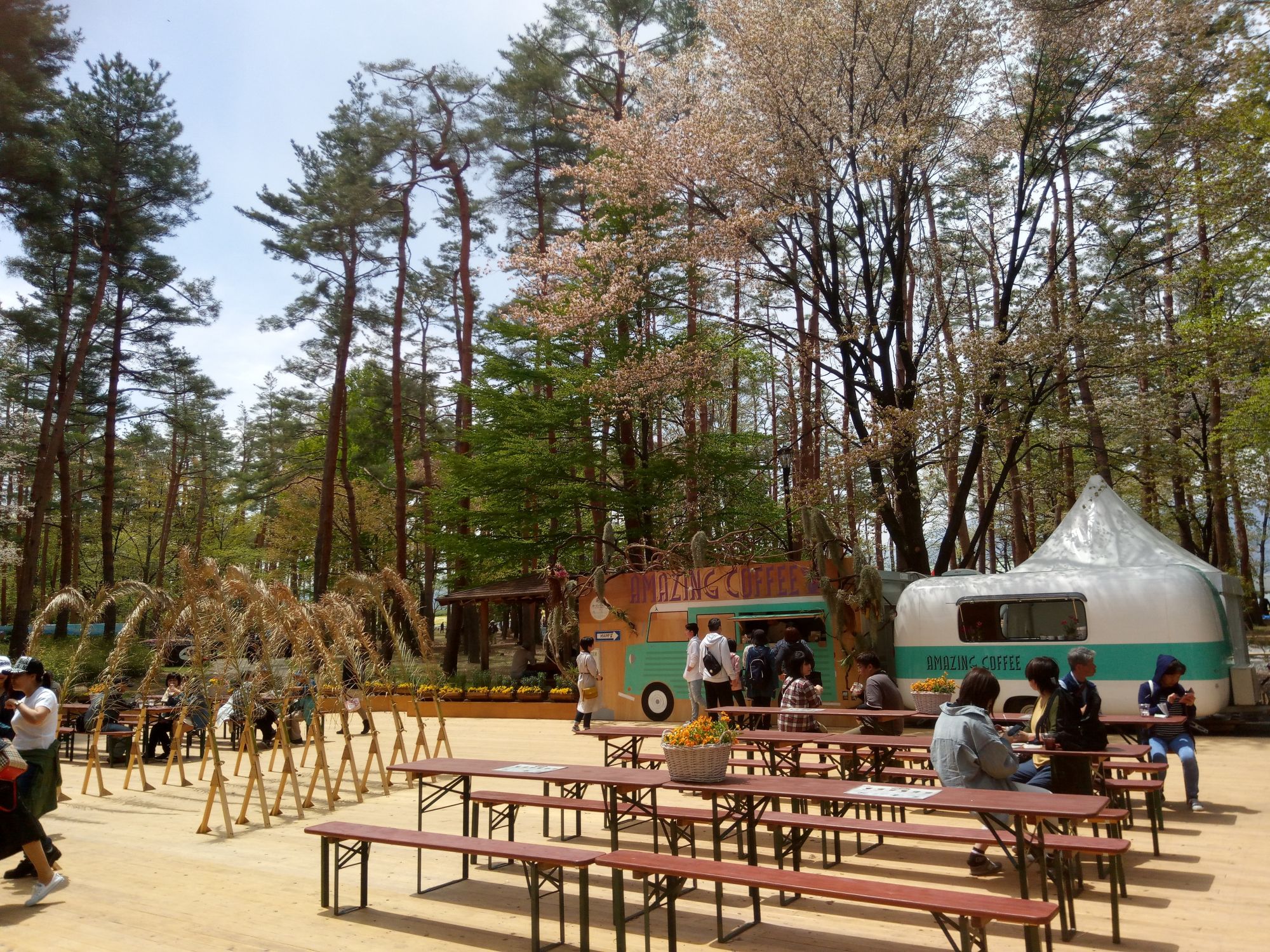 D’immenses champs de fleurs se rependent à perte de vue et tapissent le paysage, avec en fond de toile les montagnes enneigées de la chaîne des Alpes Japonaises. Vous pourrez y contempler près de 700 espèces de fleurs et plus de 550 000 plants différents.
