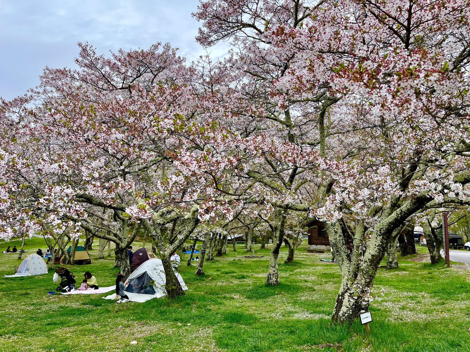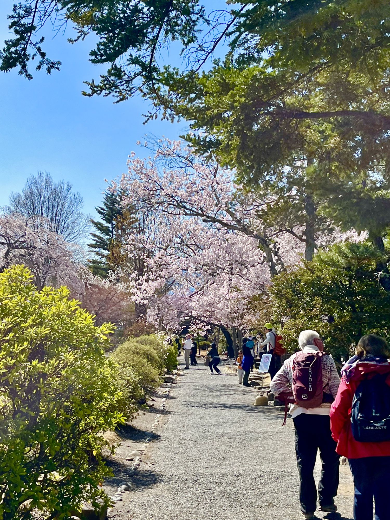 Il possède une grandes variétés de cerisiers en dehors de sa « forêt de cerisiers » qui elle se trouve à coté de la ferme. Beaucoup de yama-zakura, cerisiers des montagnes ou encore de yae-zakura, les cerisiers à floraison tardive avec leurs fleurs roses fuschia en forme de pompons qui se trouvent le long de l’allée qui remonte vers le parking de l’entrée Sud du parc.
