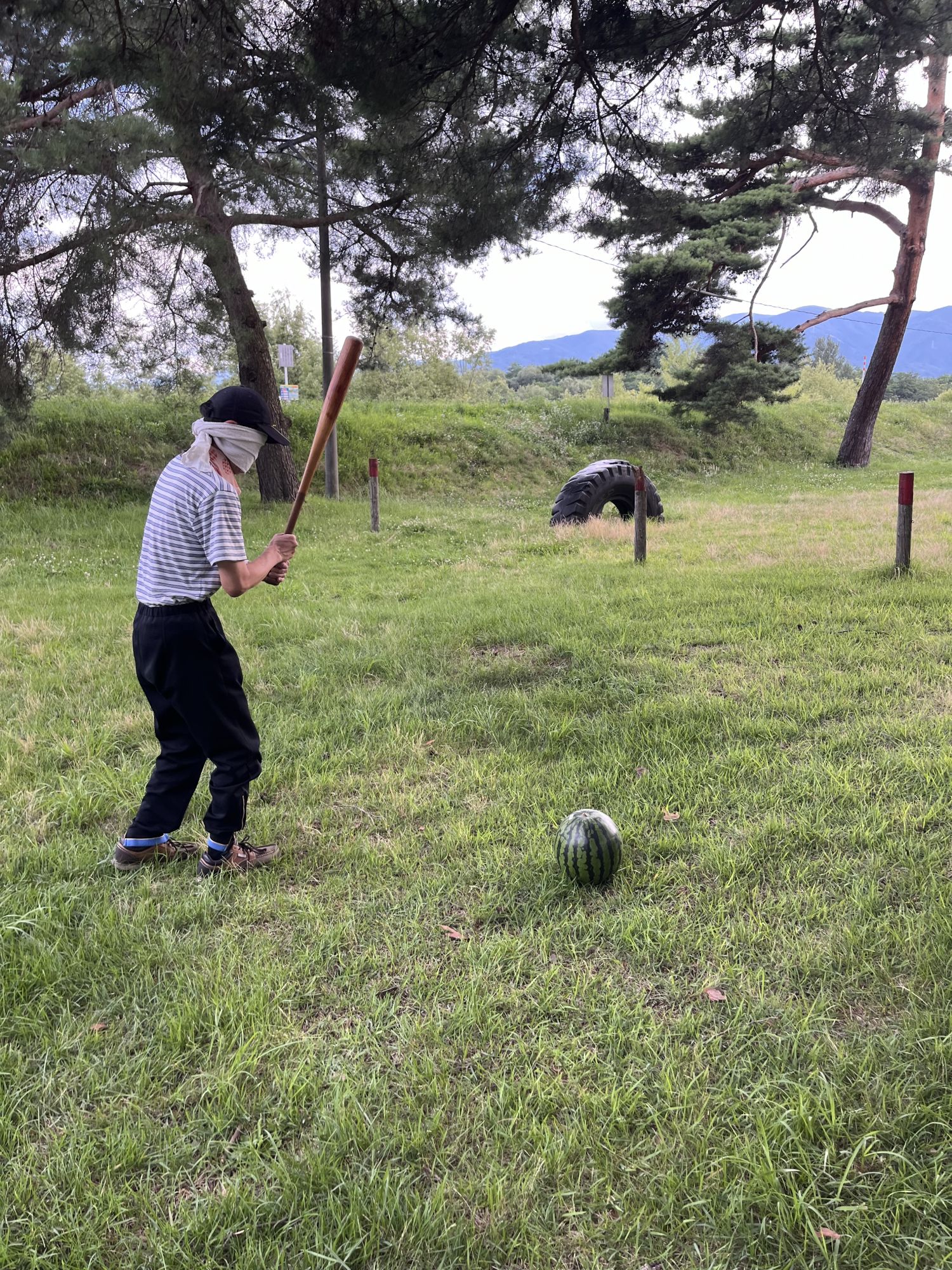 Une autre activité qui plait beaucoup aux petits comme aux grands, le « suika wari », une sorte de piñata mais avec une pastèque. Les participants se bandent les yeux et a l’aide d’un grand bâton ou d’une batte de baseball et des directions données par les autres personnes présentes, ils vont essayer de briser la pastèque ! Chacun tente sa chance et le jeu s’achève quand la pastèque est assez fissurée pour s’ouvrir en deux.