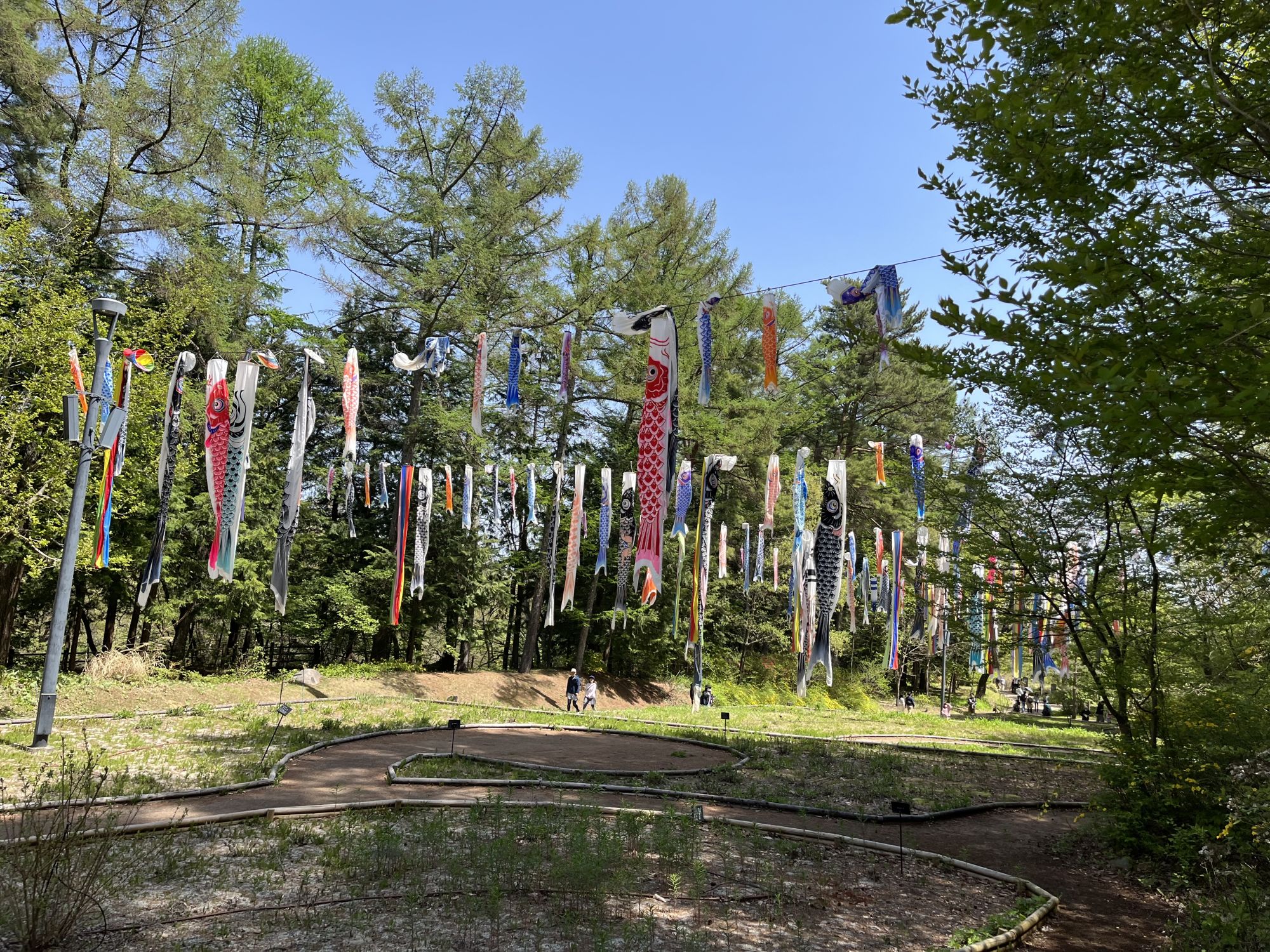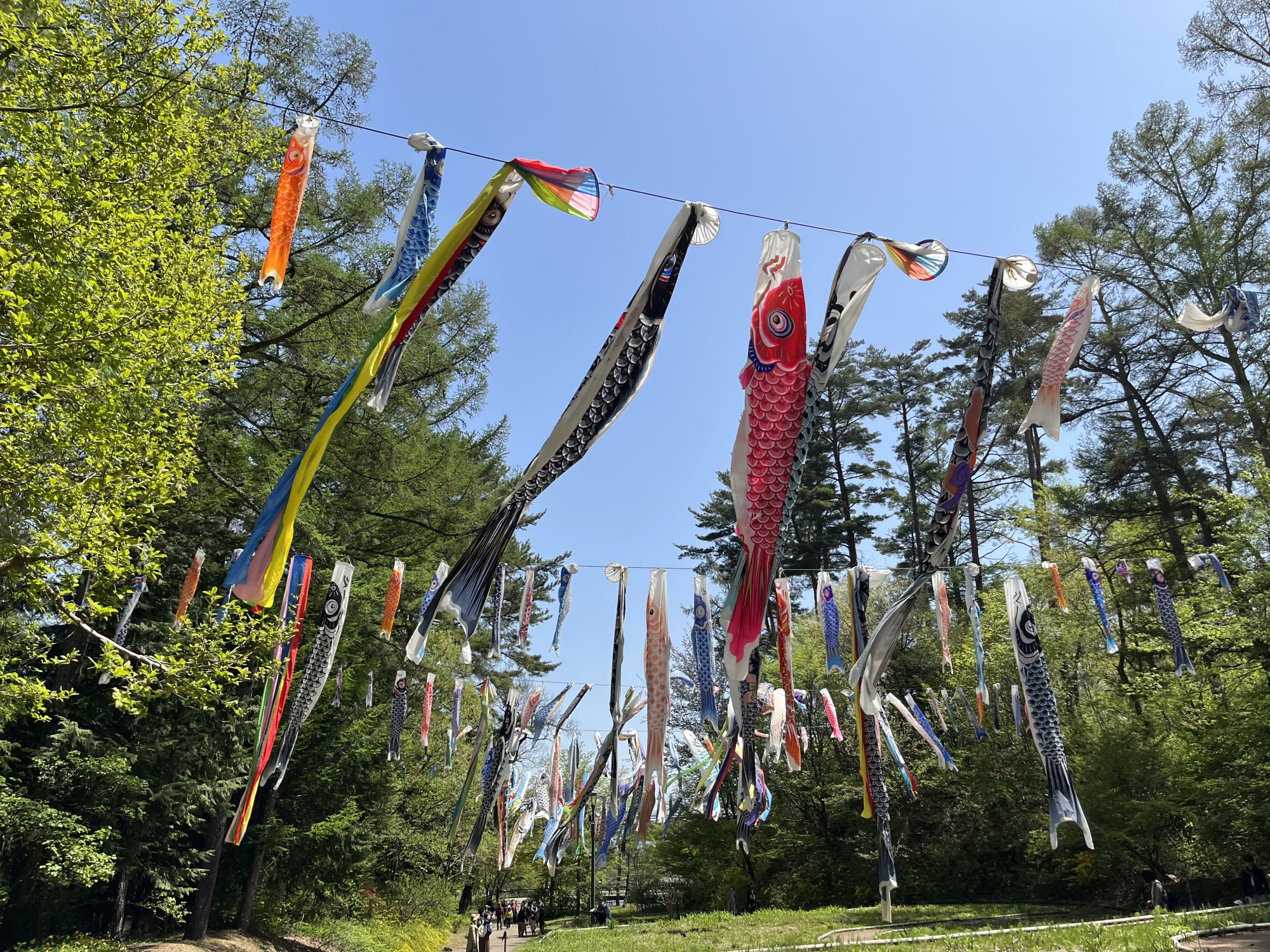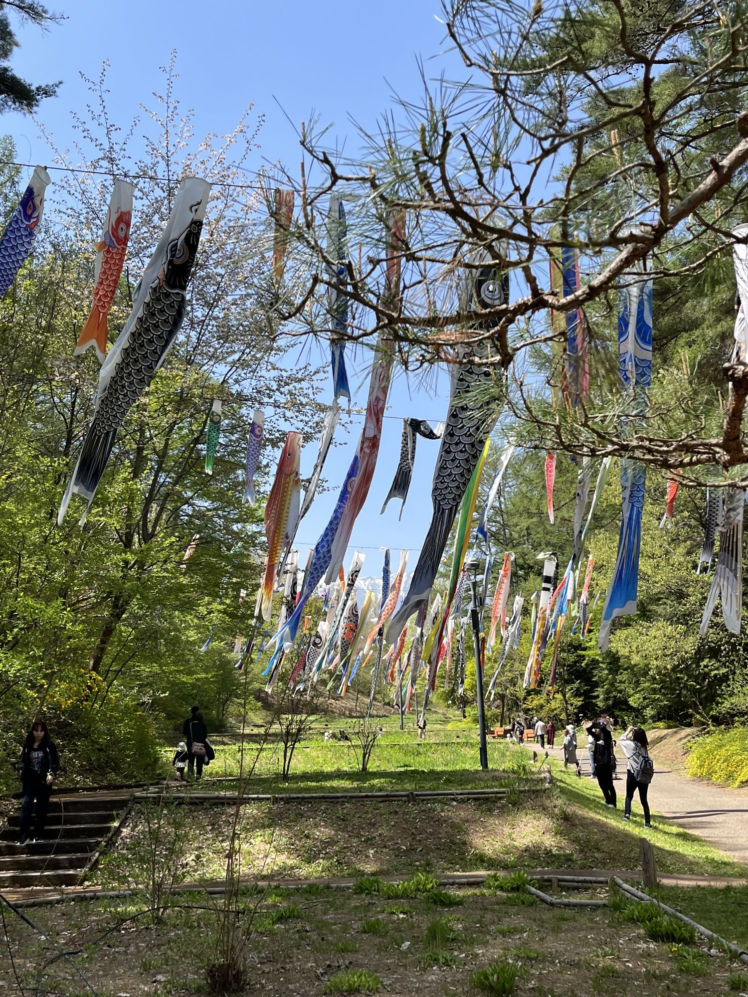 Près de l’entrée du parc, à l’opposé du jardin aux tulipes, vous trouverez plus de 200 koinobori carpes colorées volant entre les arbres. Elle ont été hissées là en l’honneur de la fête des enfants « Kokomo no hi » qui a lieu le 5 mai.