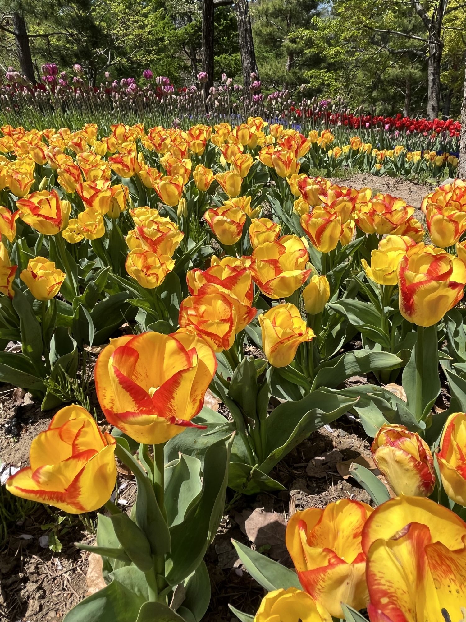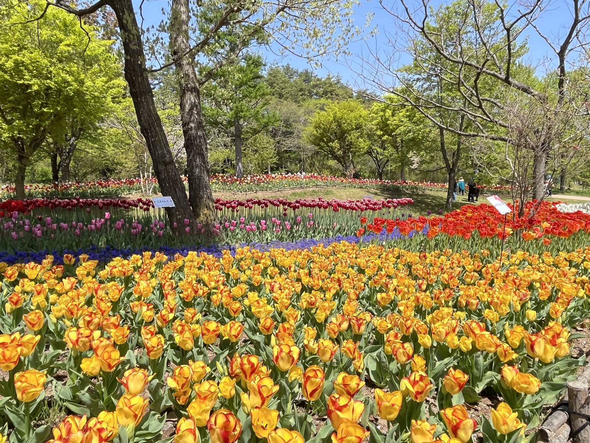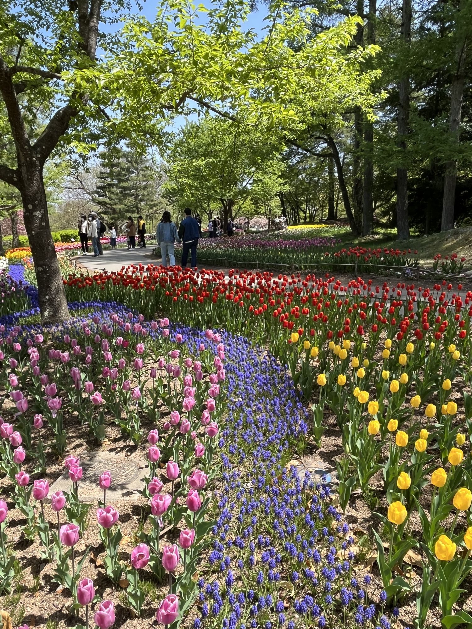Près de l’entrée du parc, à l’opposé du jardin aux tulipes, vous trouverez plus de 200 koinobori carpes colorées volant entre les arbres. Elle ont été hissées là en l’honneur de la fête des enfants « Kokomo no hi » qui a lieu le 5 mai.