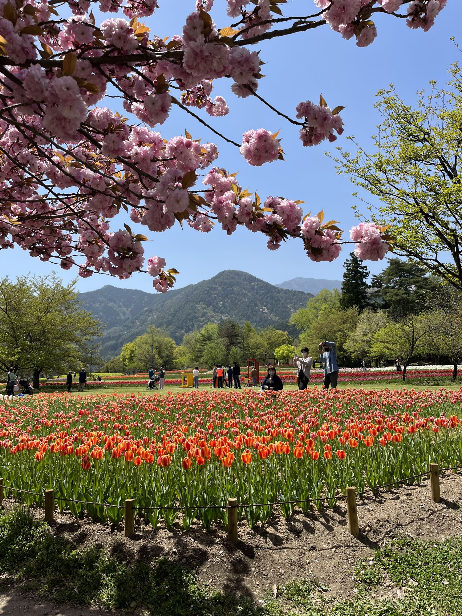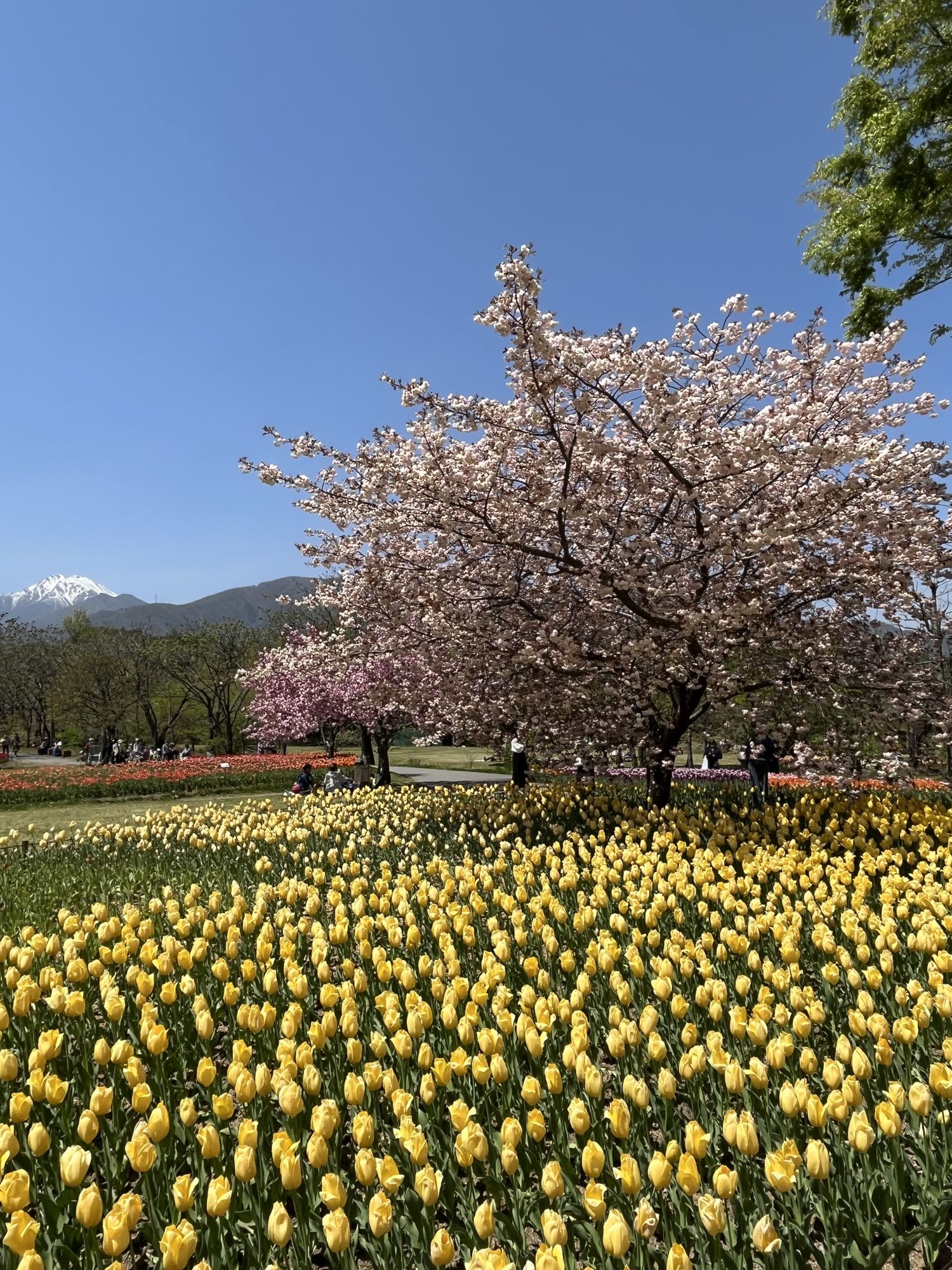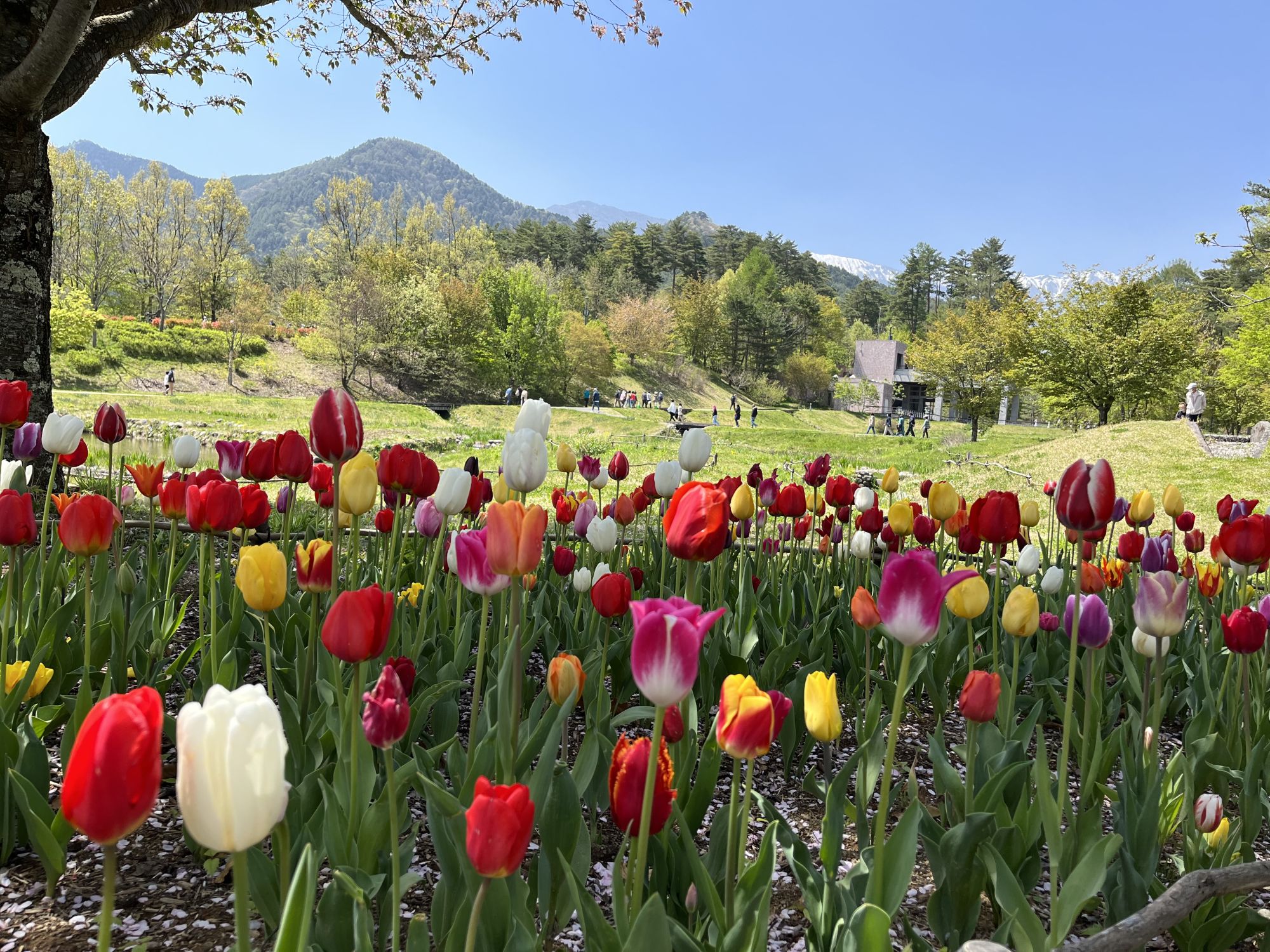 La vue d’ensemble du parc, toujours entouré de montagne est a couper le souffle. N’hésitez pas à vous éloigner un peu des sentiers du jardin des tulipes pour profiter de paysages plus paisibles et typiques des Alpes japonaises.