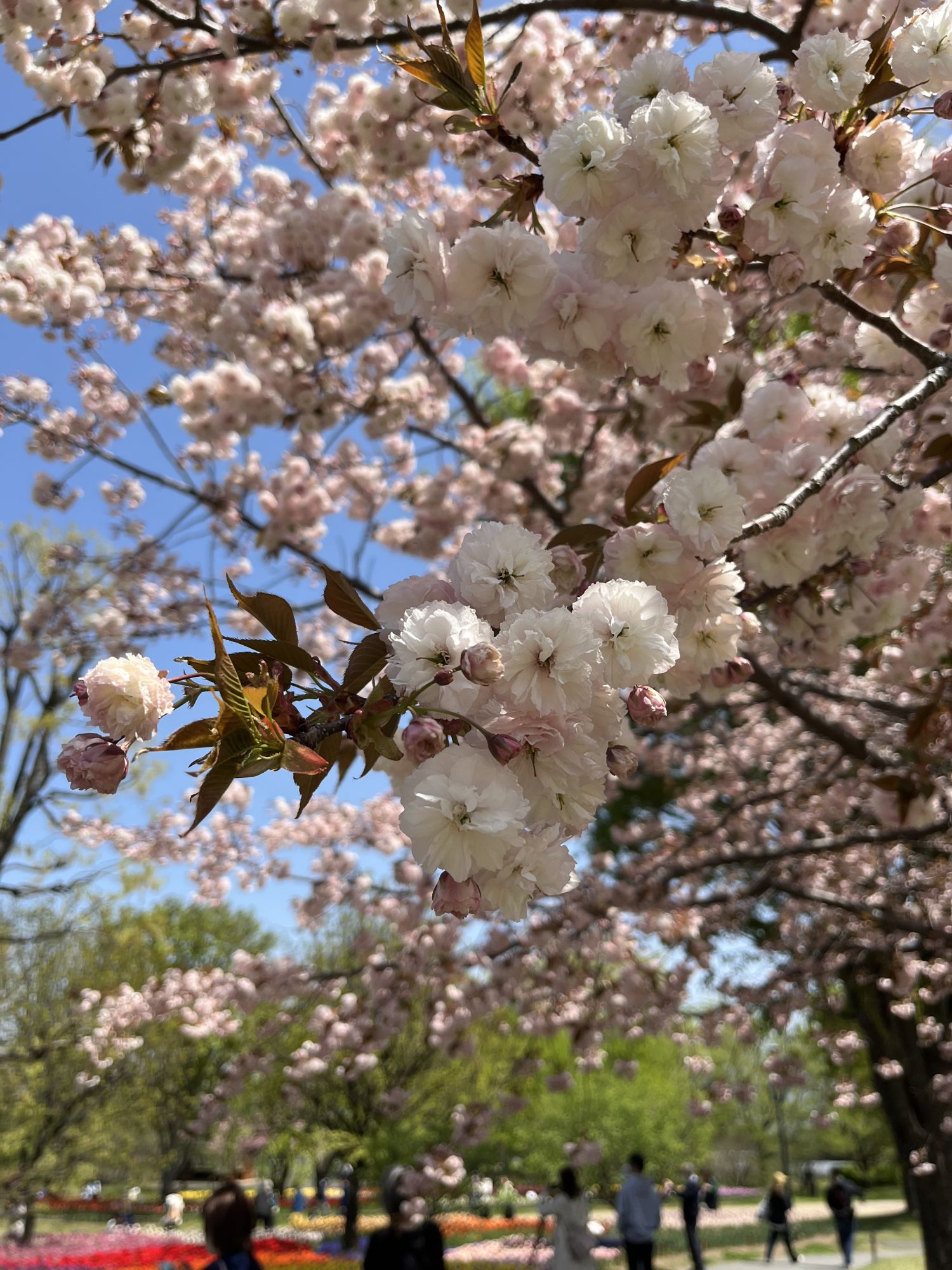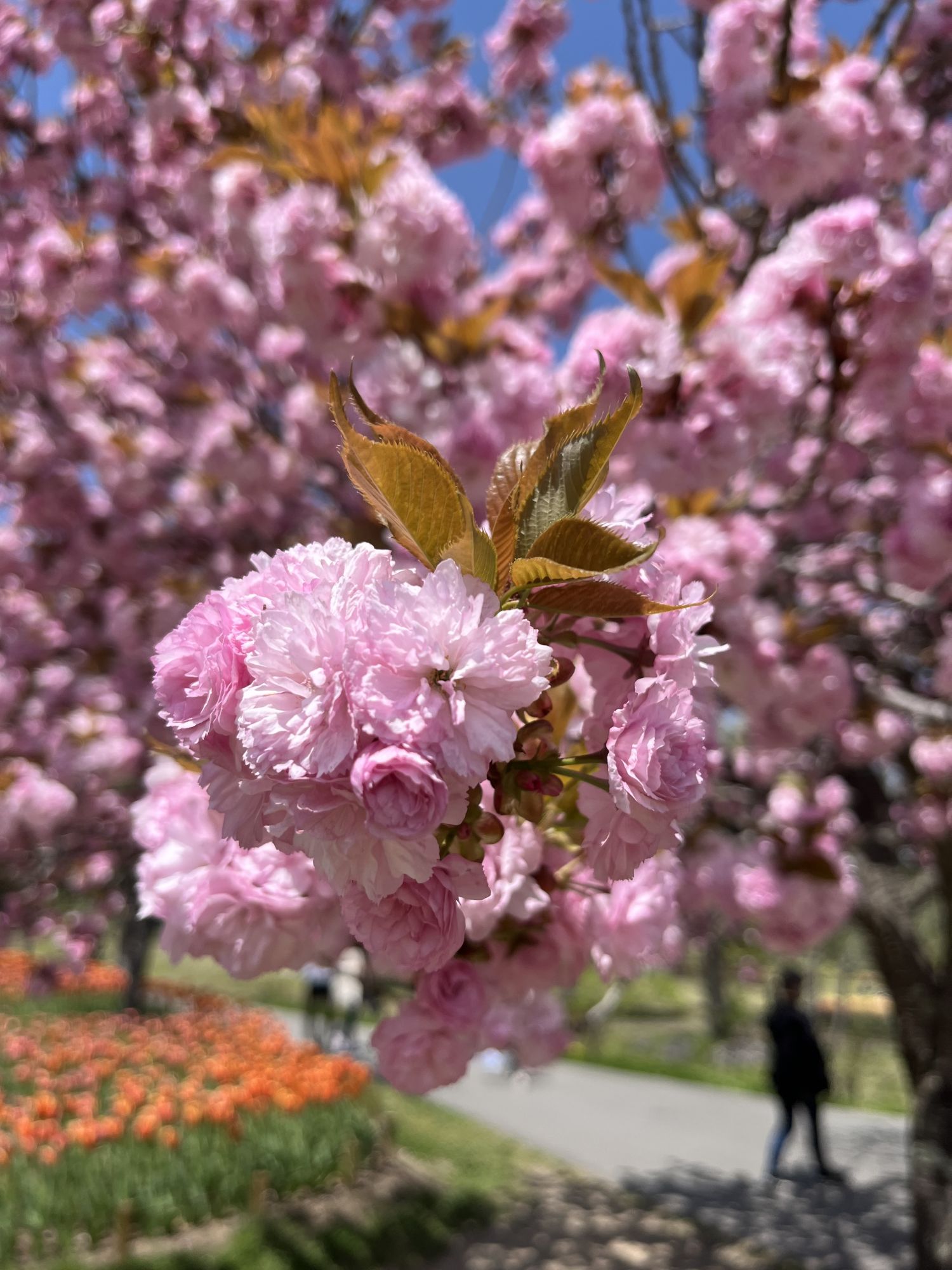 Même si à cette période le pic de la floraison des cerisiers est passé, vous pourrez néanmoins admirer les beaux cerisiers à floraison tardive avec leurs fleurs roses et en forme de pompon.