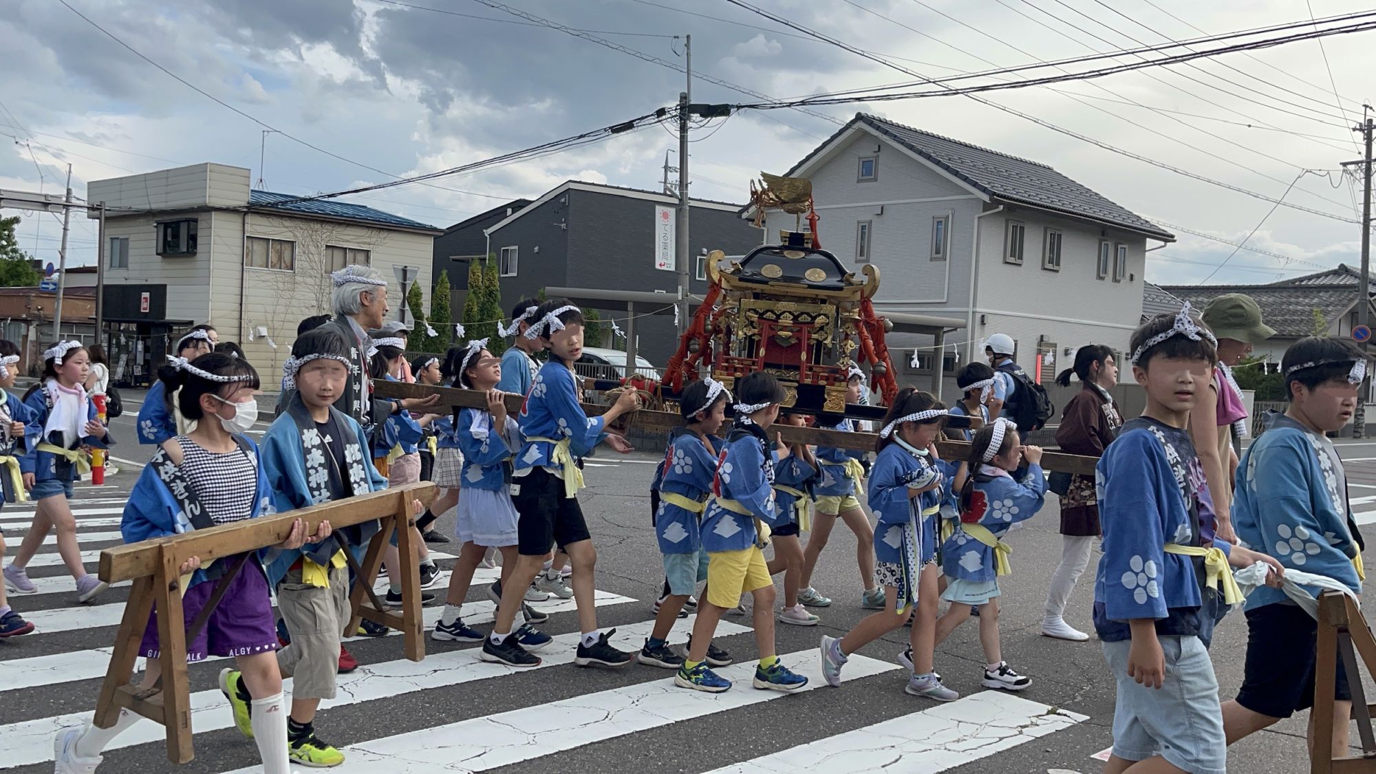Le premier jour, ce sont des enfants d’école primaire qui se réunissent pour transporter à travers les rues du quartier le « o-mikoshi », une sorte de palanquin divin qui accueille symboliquement « l’esprit du kami », la divinité qui est protégée par le sanctuaire. Ces petits sanctuaires portatifs sont très travaillés et décorés et peuvent peser très lourd. Ils se portent sur l’épaules à l’aide de poutres et les participants doivent s’y mettre à plusieurs s’ils veulent pouvoir le soulever.