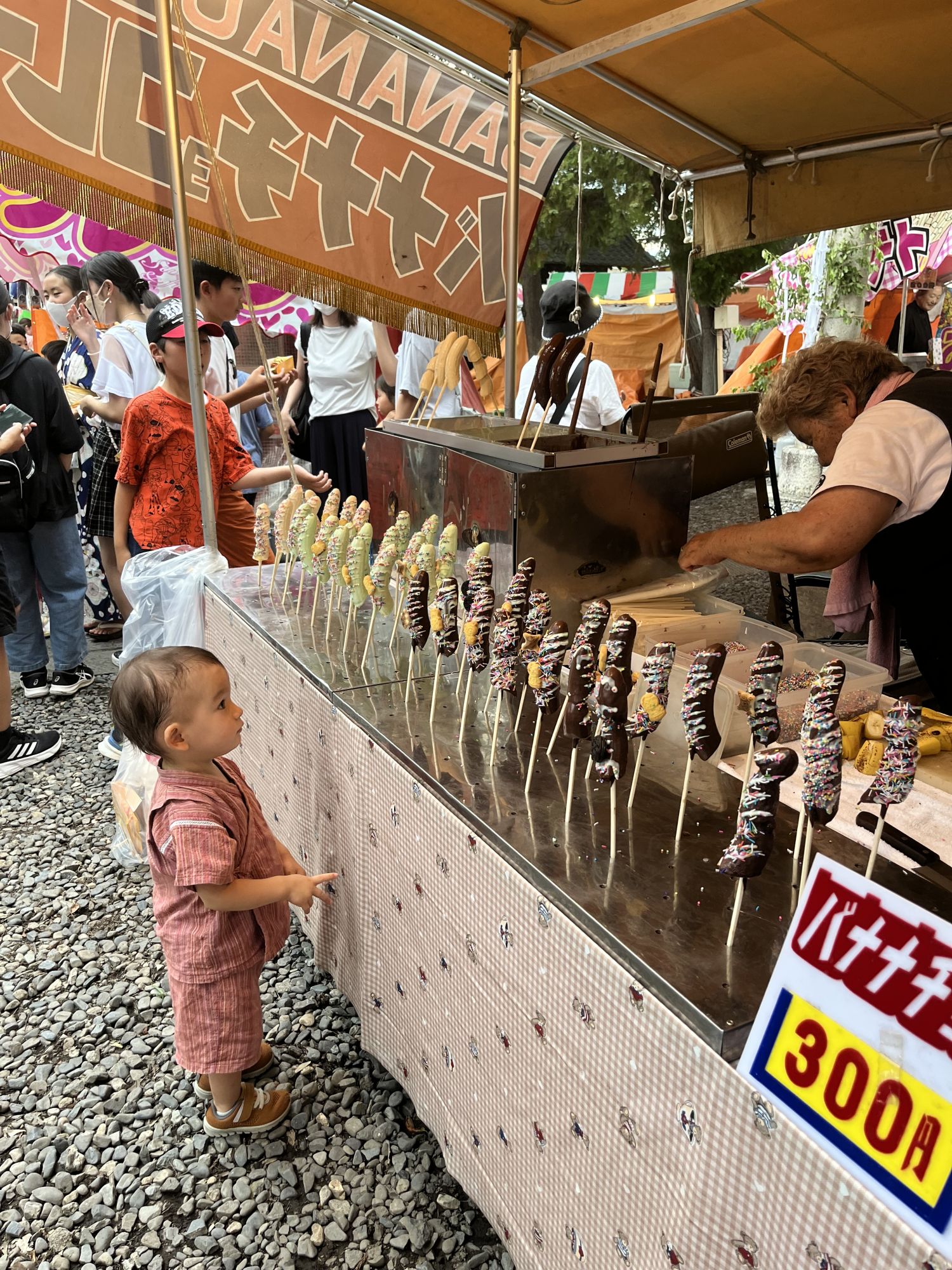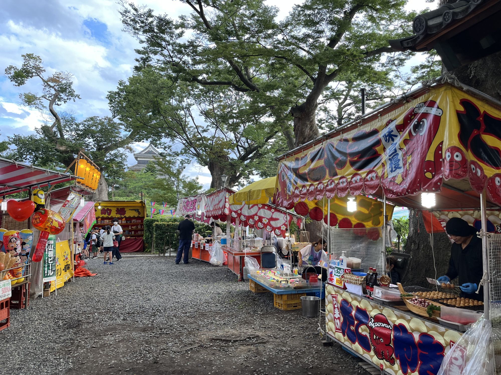 Le sanctuaire de Matsumoto est connu pour son « Kokomo no matsuri », le festival des enfants. On n’y trouvera donc pas de boissons alcoolisées mais des stands de sodas par exemples. Il y a également de quoi tenter sa chance pour remporter quelques jouets lumineux ou meme des poissons rouges.