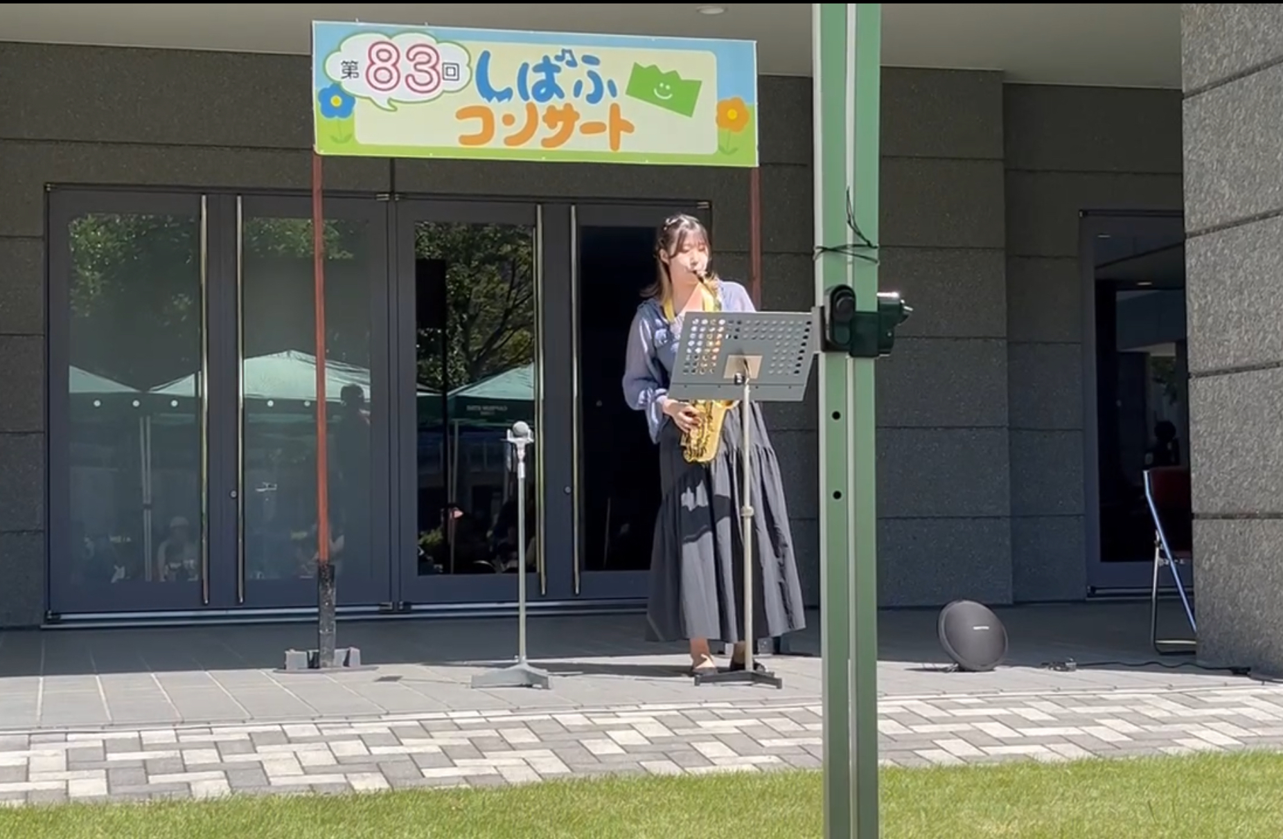Le terme « shibafu » signifie « pelouse » et c’est en effet sur la pelouse au nord du bâtiment du Kissei Bunka Hall qu’a lieu le spectacle. Il y a assez d’espace pour que les enfants puissent se défouler librement tout en profitant du spectacle.