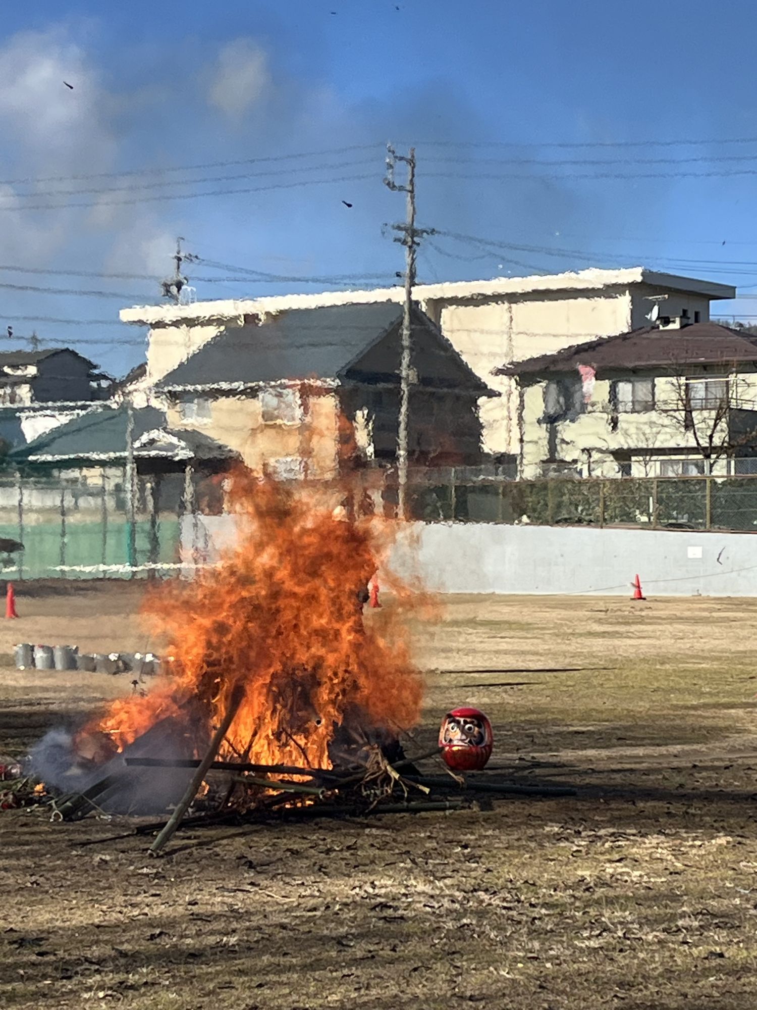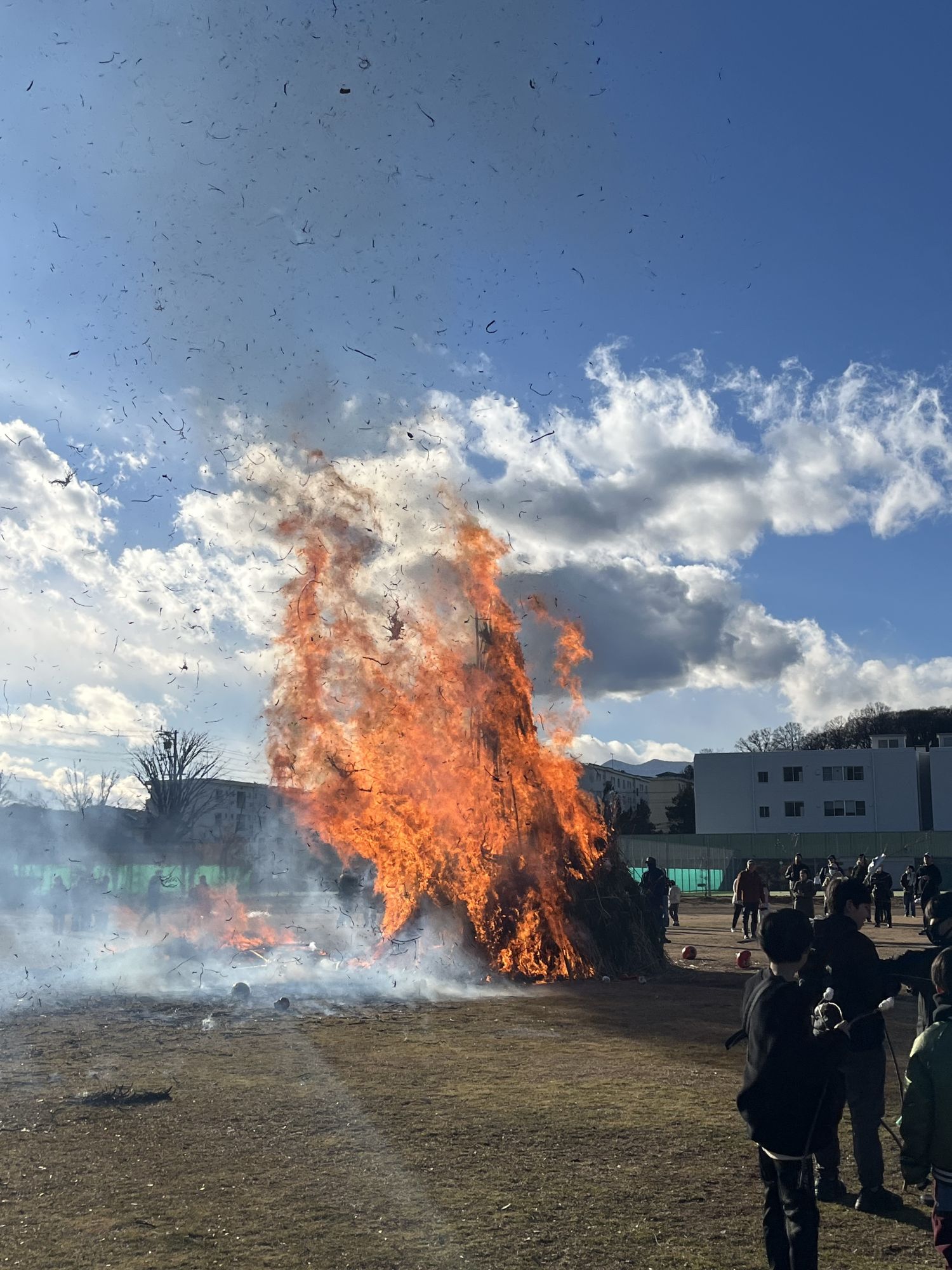 A Matsumoto, ce sont essentiellement les communautés de quartier et les associations d’élèves de primaire qui organisent le San-ku-ro dans de grands parcs (comme c’est le cas pour notre quartier : le parc accueillait les bûchers de trois quartiers différents) ou sur les berges des rivières.