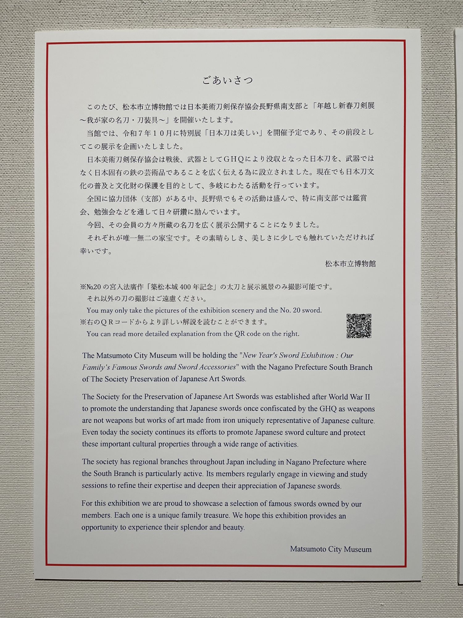 Du 12 décembre 2024 au 20 janvier 2025, vous pourrez même profiter d’une exposition de katana de la région. Cette exposition est gratuite et propose des explications en anglais.