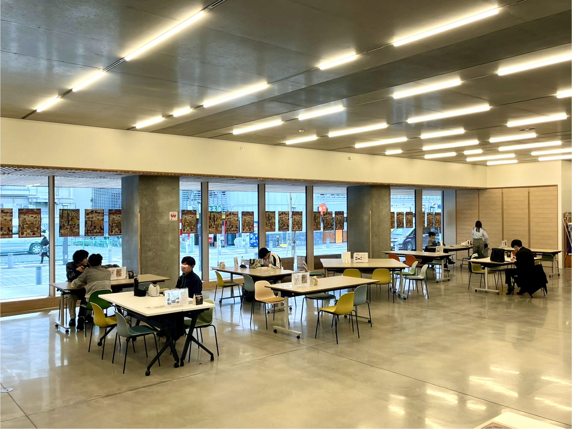 Le rez-de-chaussée comprend une belle boutique de souvenir, mais derrière celle-ci vous trouverez le café High-Five, puis en descendant quelques marches, des tables qui sont libres d’accès. De nombreux étudiants ou meme salaryman viennent s’y poser pour travailler un peu.