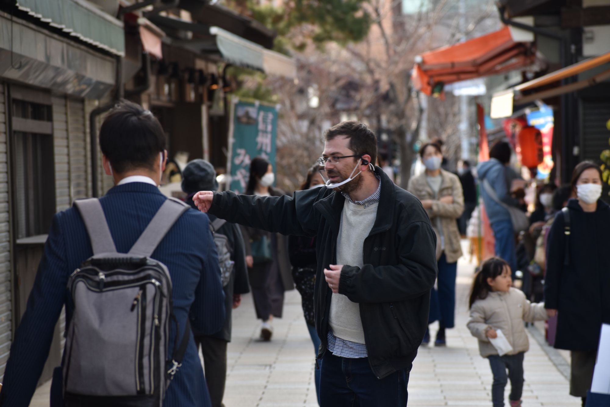 La vidéo continue sur la rue piétonne de Nawate, où l’on trouve de nombreux magasins et produits locaux réunis autour du thème de la grenouille.
