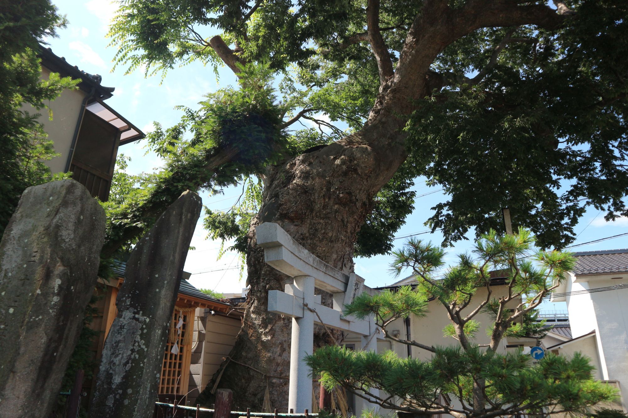 その神社の森は、近年では昭和初期に遂げた北方隣接地の拡張や植樹、そして昭和57年の境内大改修を通じ、先人の尽力によって守り育てられてきました。しかし自然は容赦なく猛威を振るい、最長樹齢の大木の芯部は、すさまじい落雷によって炭化し、今では巨大な空洞となってしまいました。その傷ついた姿でも、古木は強靭な生命力を維持し、春には新たな蕾が芽吹き、夏には青々とした新緑で境内を鬱蒼と覆い尽くします。