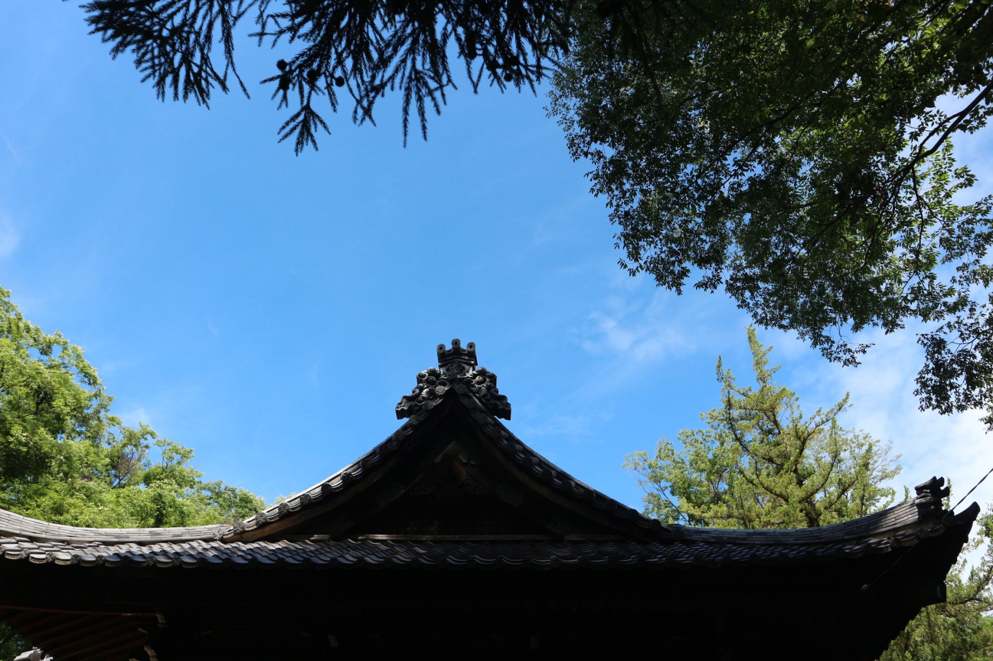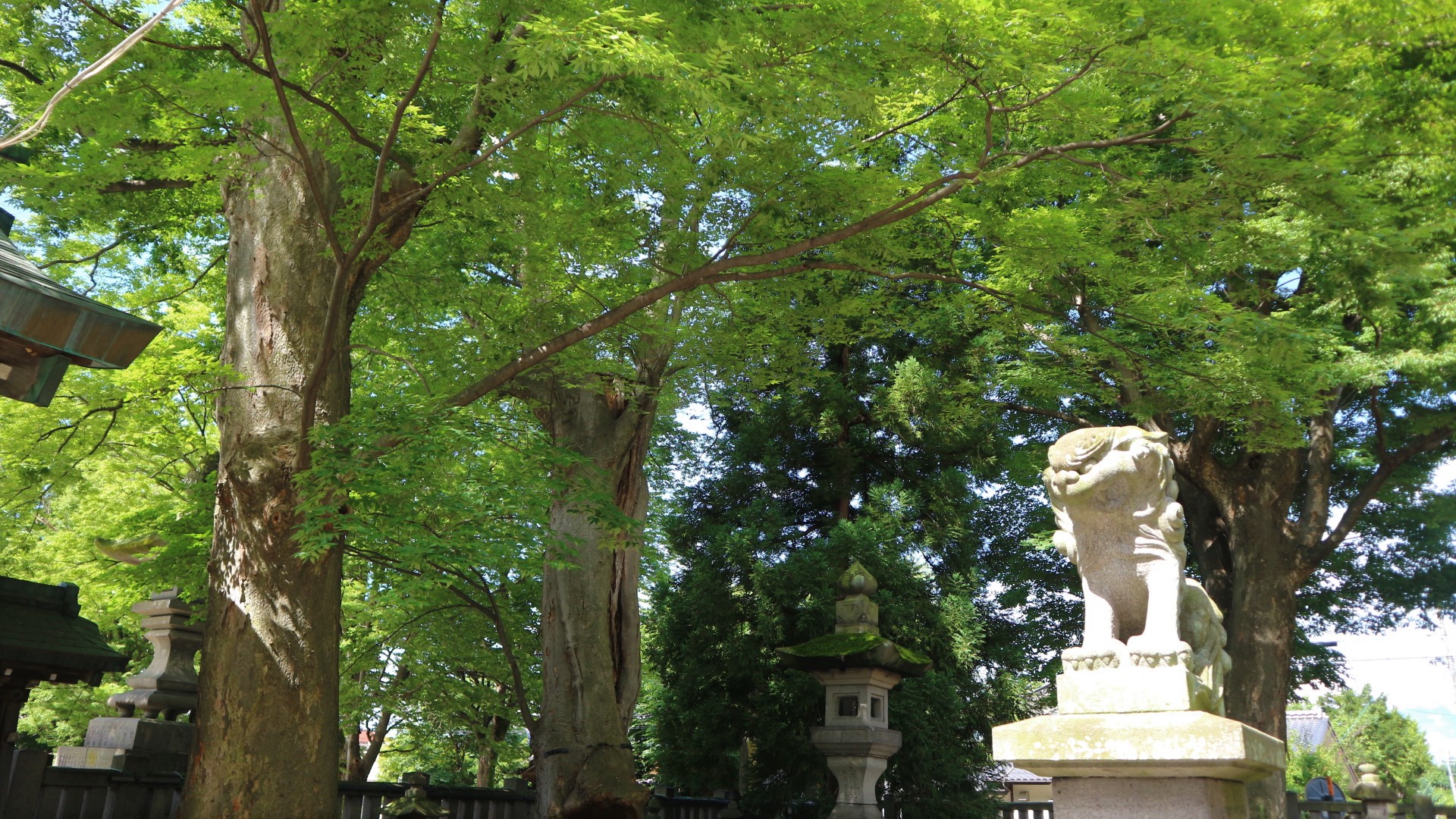 岡宮神社の森とまちなかの初夏の木々
