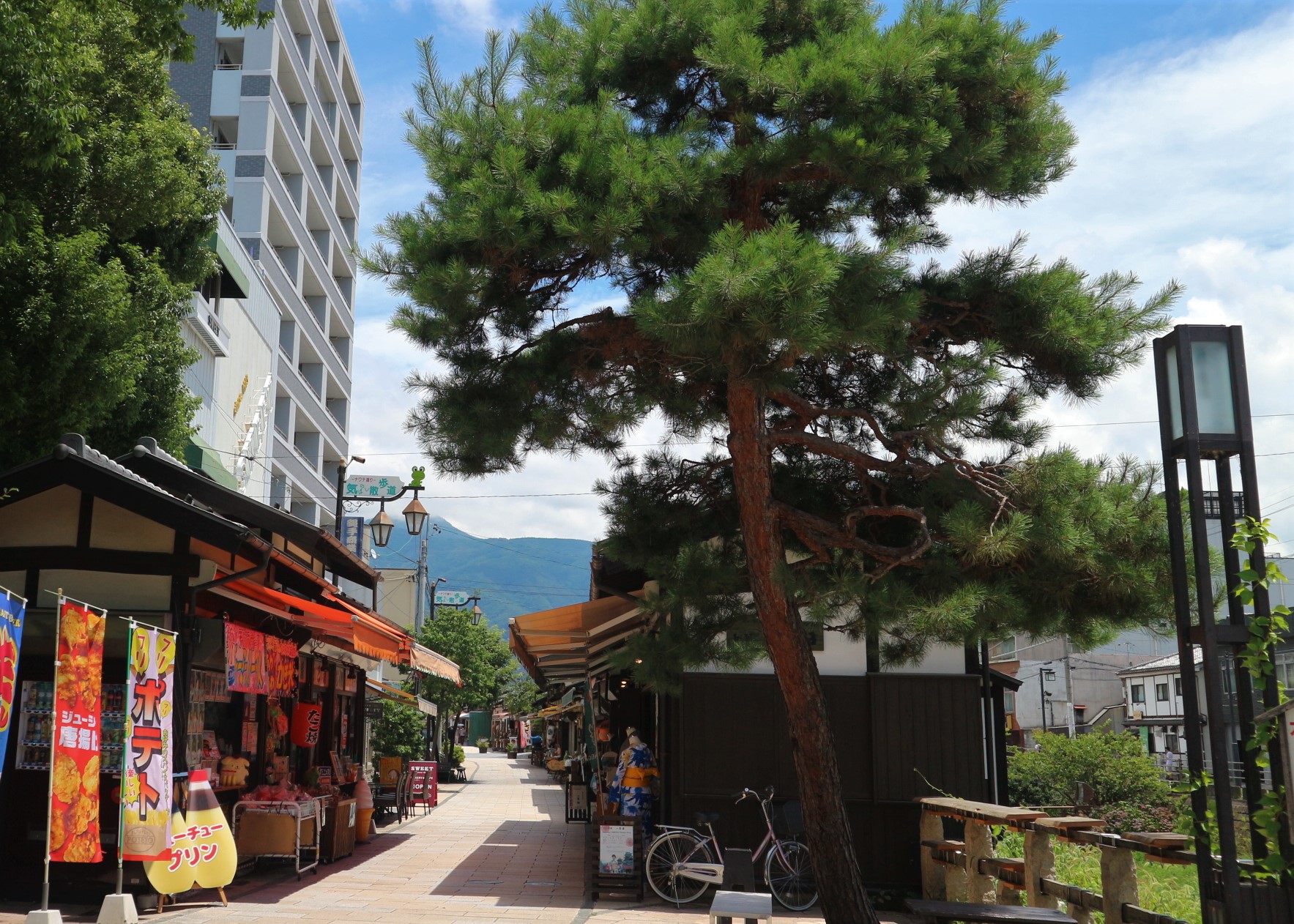 縄手通りには、2000年からの建て替えの際、通りに松を植えました。古い写真に松並木があったことから通りが整備された際植えられました。