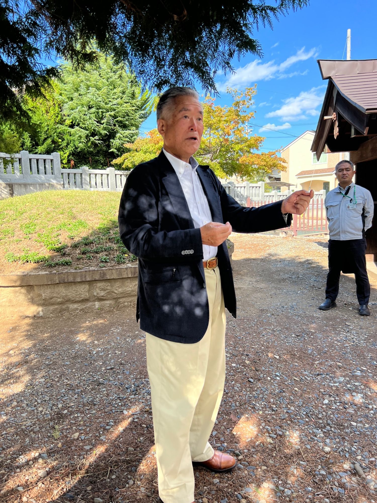 老朽化した義民塚をどうするか相談され当時はこの辺りは木はうっそうと茂り、以前あった会館はグラグラしていて建物は崩れそうな状態でした。お金は全然ないので、やり方は任せると言われ、土地の1部を売却した収益を整備費に充てて、新しくしたそうです。その後も引き続きボランティアで地域の人も交えて清掃活動や神事などもおこなっています。