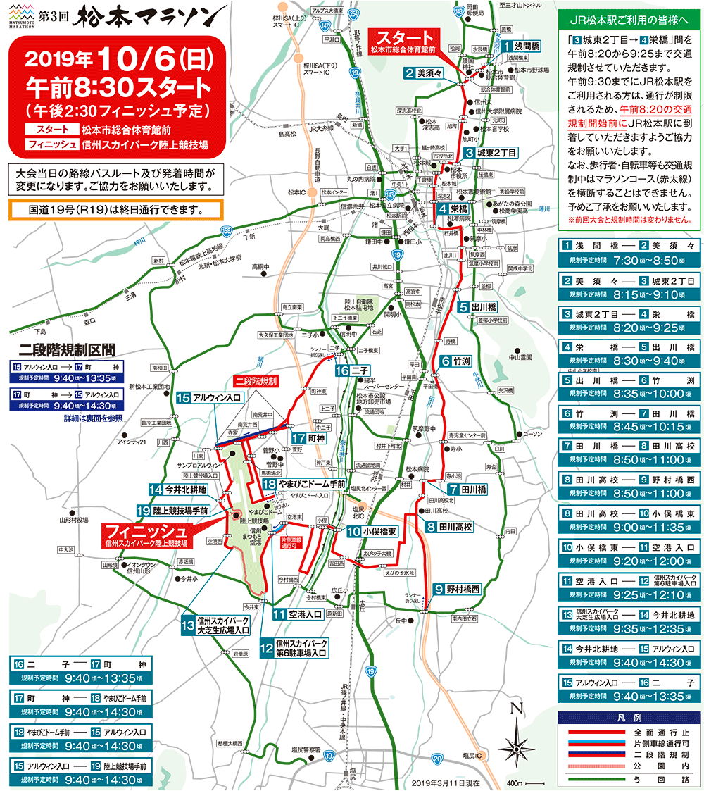 2019年10月6日(日)松本マラソン開催に伴い、以下の通り交通規制を実施します。