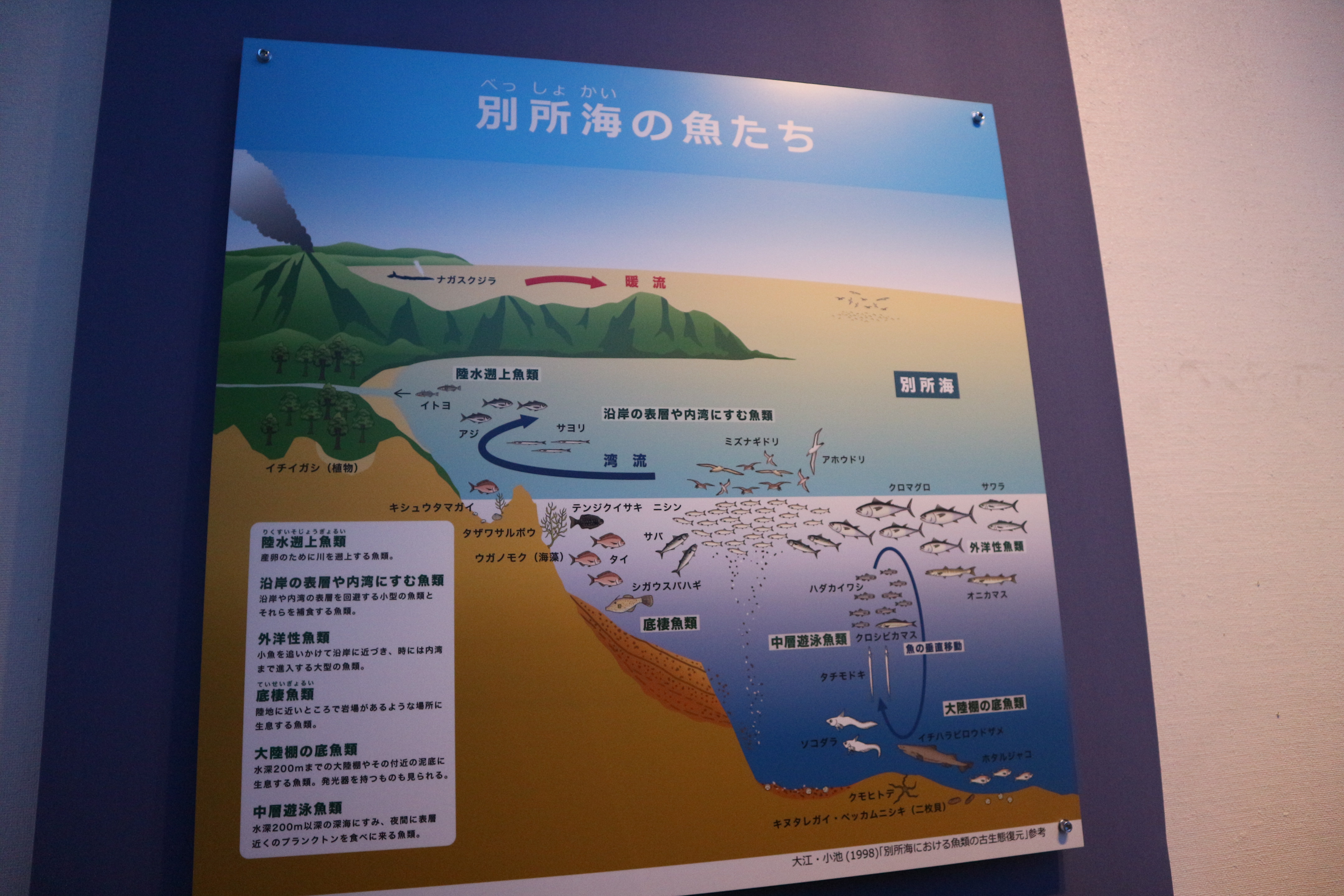 興味を引くタイトルとわかりやすい解説、化石がどんな魚なのかわかるように魚のイラストも入り見ていても楽しくなるパネルです。