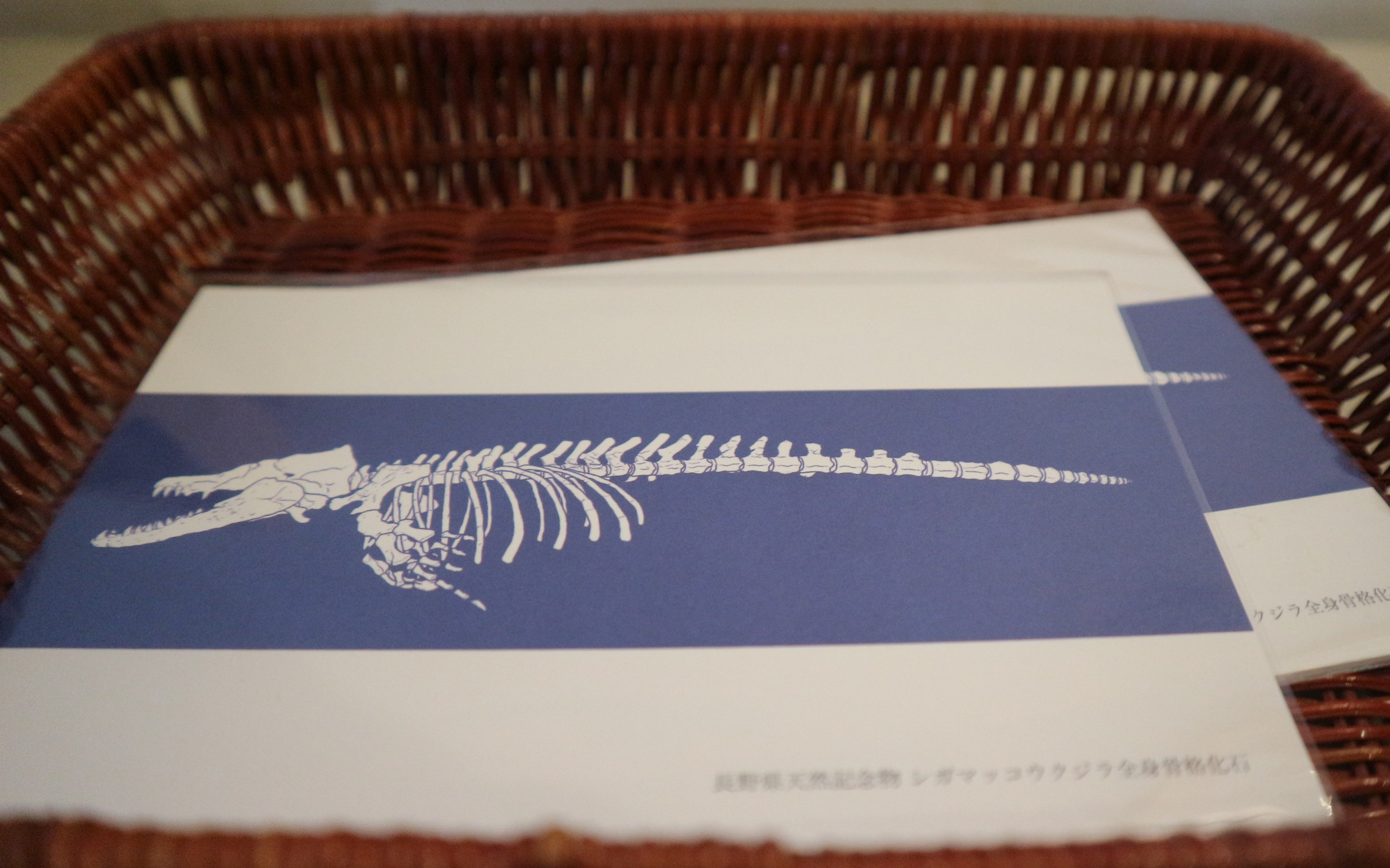 これは環太平洋で2例目、全身骨格としては世界最古の大発見となり、シガマッコウクジラと名付けられました。四賀化石館は、このクジラの全身骨格化石をメインに、旧四賀村内外から採集されたクジラ類やアロデスムス、貝、植物などの化石を収蔵・展示する目的で1989年(平成元年)に開設されました。(化石館HPより)