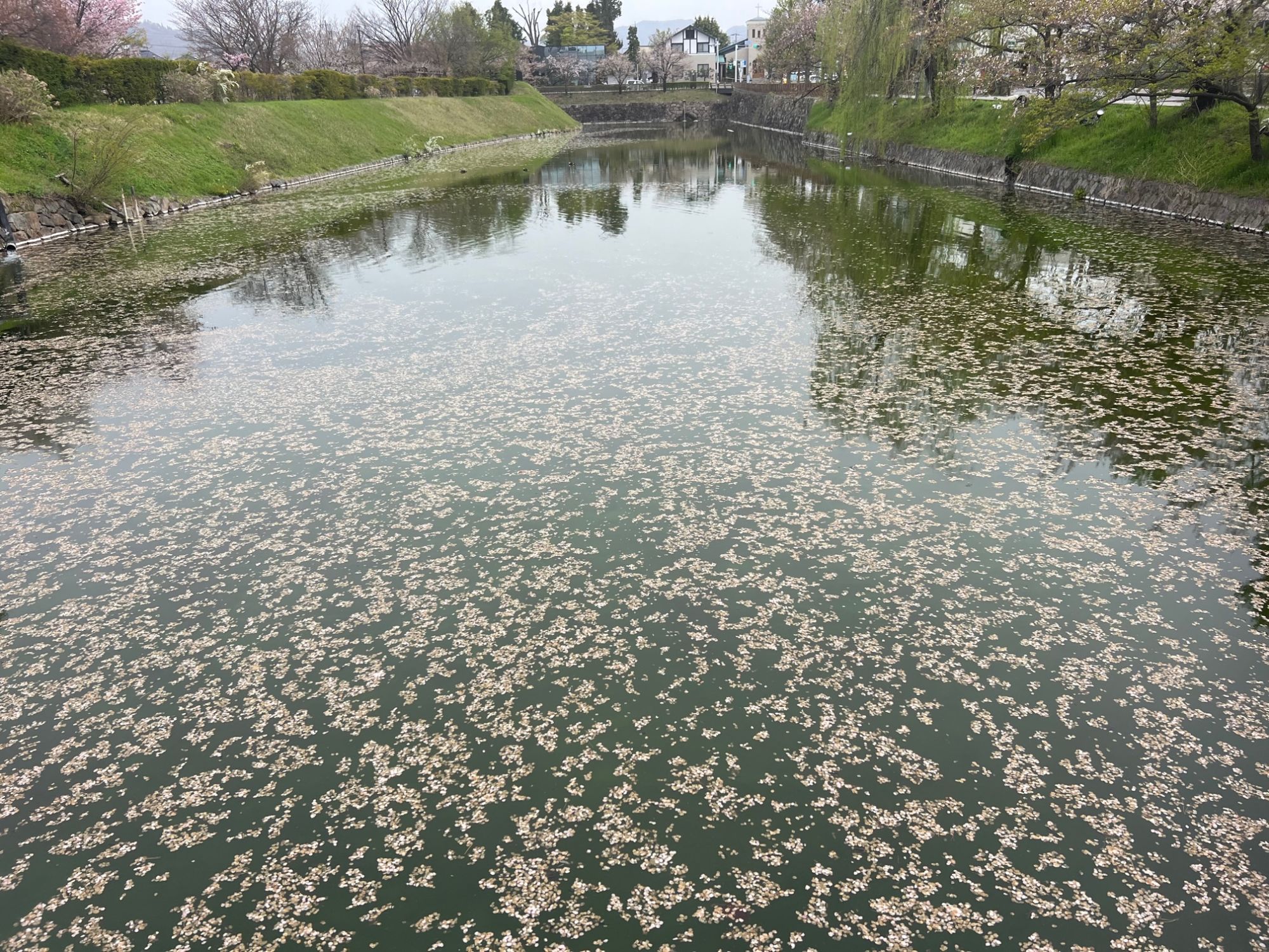 松本城二の丸御殿跡・外堀の桜 桜情報 国宝松本城 松本さんぽ 2024.4.18 ♥21 4月18日(木)曇り 朝8時半ごろ 花筏を見たくて出かけましたが・・・すでに終わりかけでした。 外堀北 外堀北 桜は葉桜になりかけています。 葉桜 二の丸御殿跡の土蔵の横の桜 土蔵の桜 土蔵の桜 枝垂れ桜も咲いていました。 枝垂れ桜 二の丸御殿跡の桜 松本城 名前のわからない桜が何本か咲いていました。 さくら さくらさくら さくら2 二の丸御殿跡の桜 外堀東 外堀東 葉桜 松本城の桜もそろそろ終わりを迎えていました。 Tweet