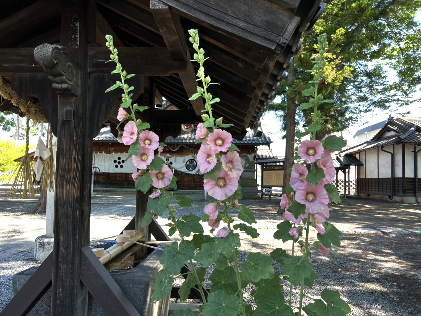 国宝松本城の北にある「松本神社」6月から咲き始める立葵(タチアオイ)は、季節を知らせる花として有名です。