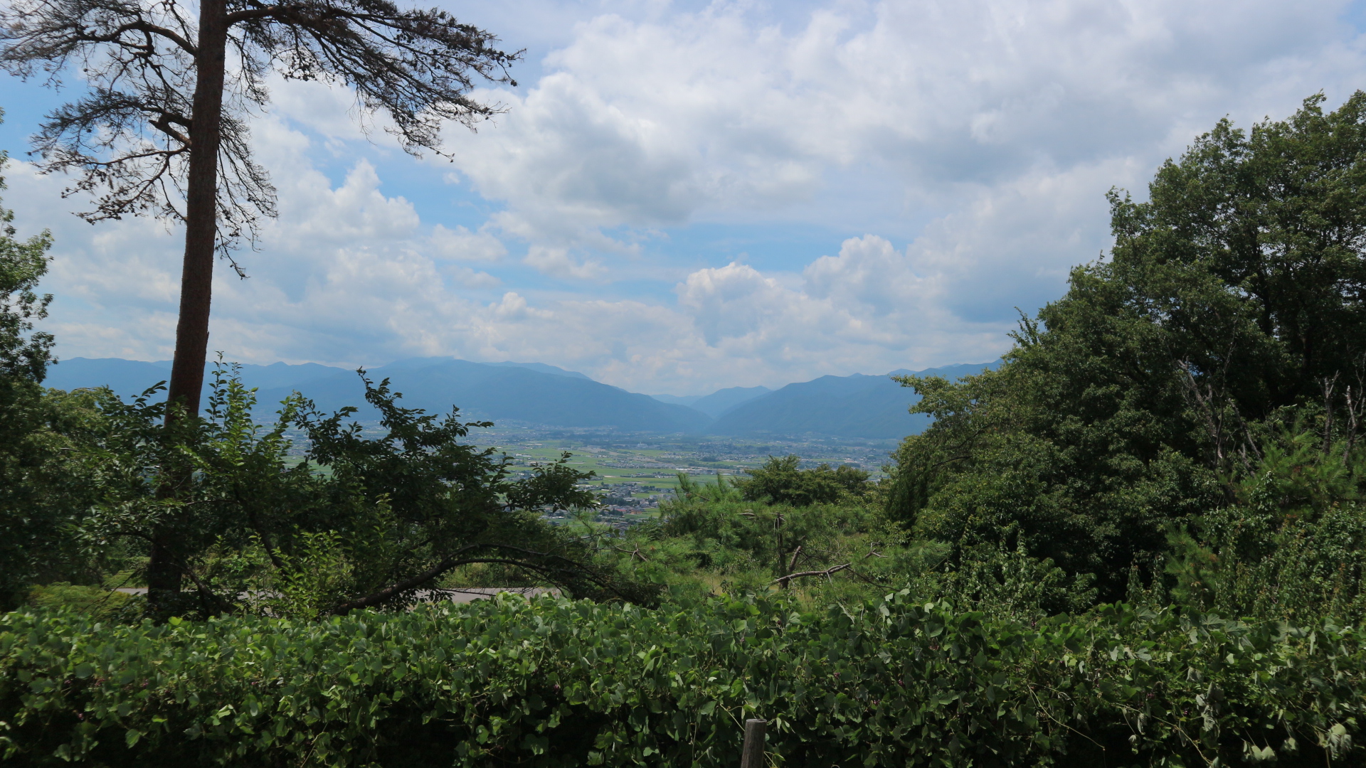 松本市街地の西北部の丘陵にあり、城山公園の北の尾根続きに位置しています。西に常念岳と蝶ヶ岳を中心とした北アルプスの山々や麓に広がる安曇野の眺望、東に美ヶ原高原と松本市街地を眺望することができます。
