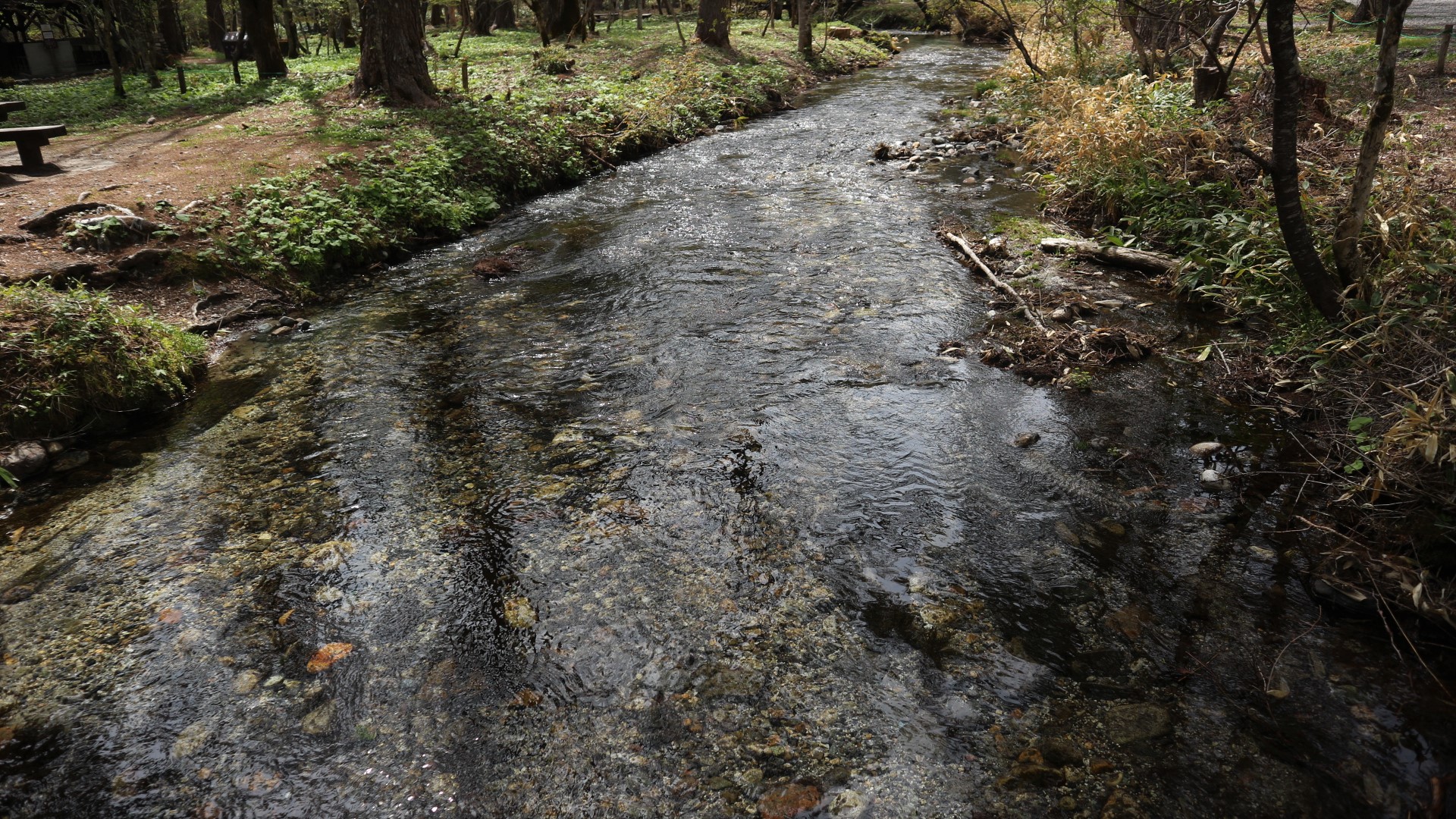 河童橋に戻り小梨平に向かいます。このエリアにもいくつか小さな川が流れています。