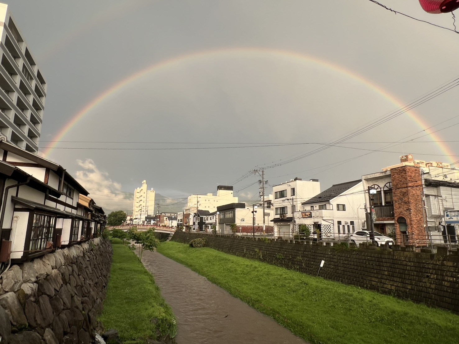 豪雨の後のダブルレインボー