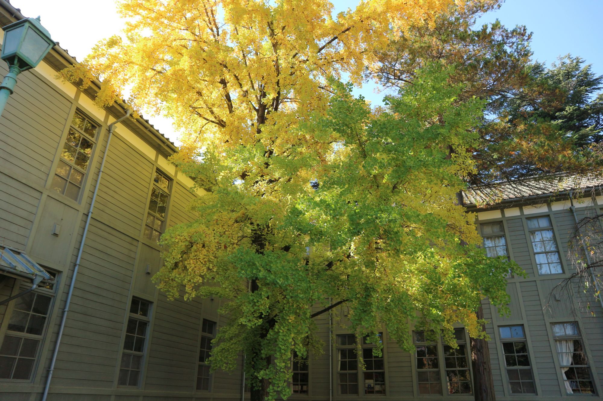 あがたの森 美しすぎる世界に心が踊る♪ 紅葉情報2019/11/05 2019.11.5 ♥50 この秋1番の寒さ 朝霜が降りて澄み切った空気に包まれた1日 あがたの森公園は紅葉が始まっていました。 美し過ぎる紅葉 旧制松本高等学校の校舎に映えます。 心躍る風景 銀杏のぎんなんもプリプリしてます。 まだしばらく紅葉が楽しめそうです♪ Tweet