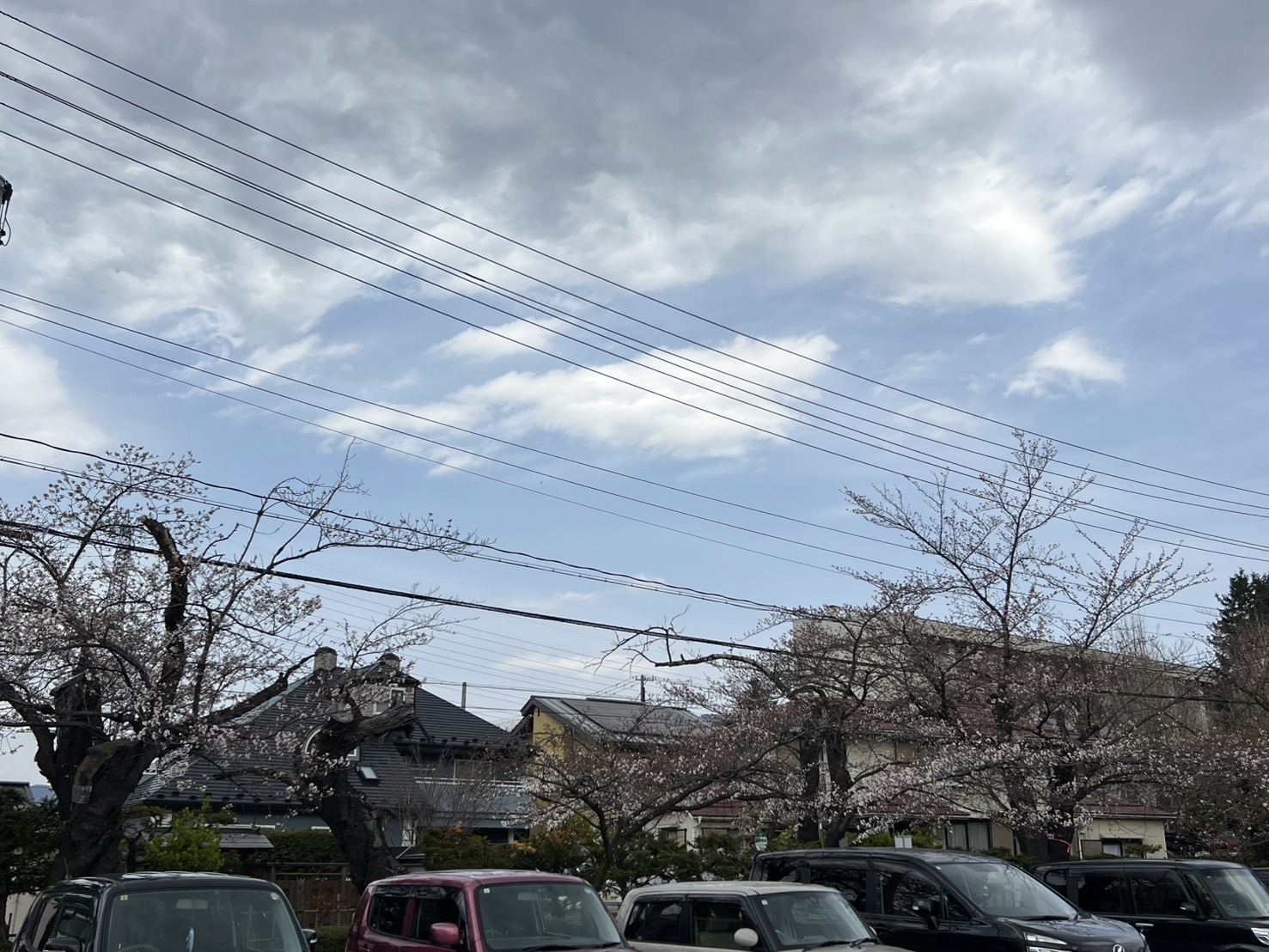 駐車場のソメイヨシノは咲き始めです。