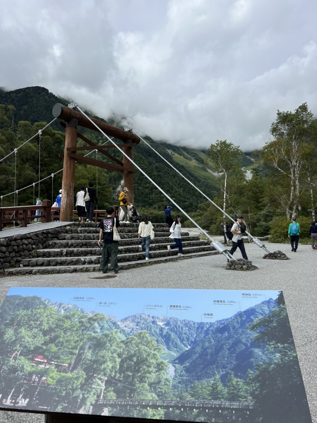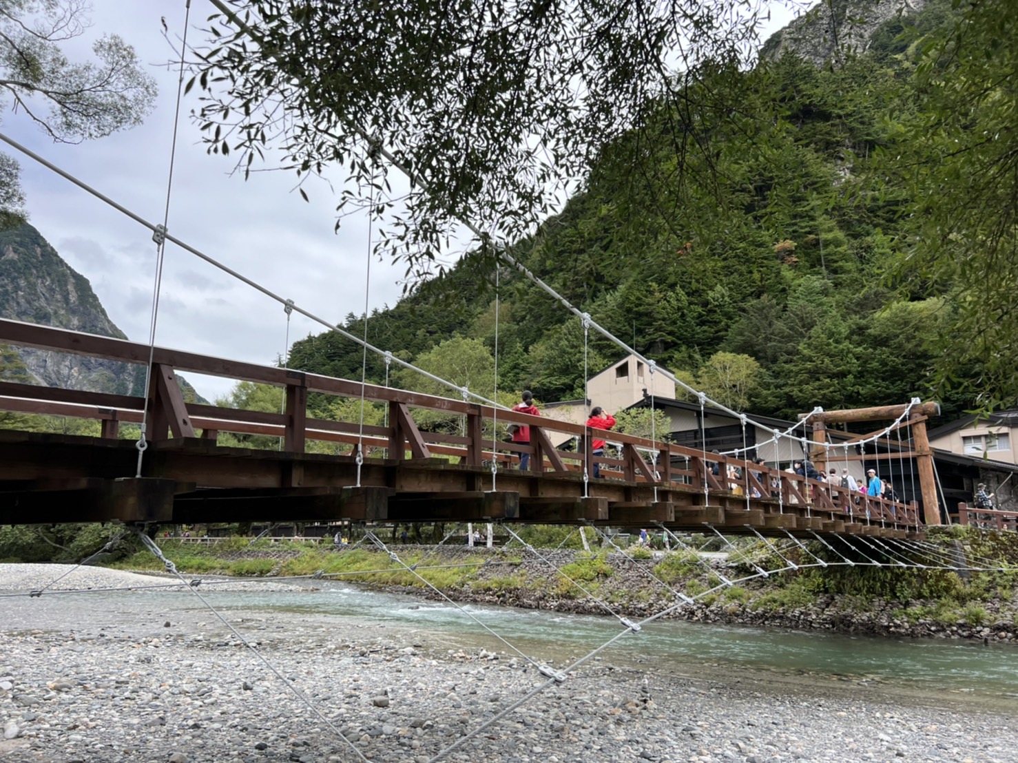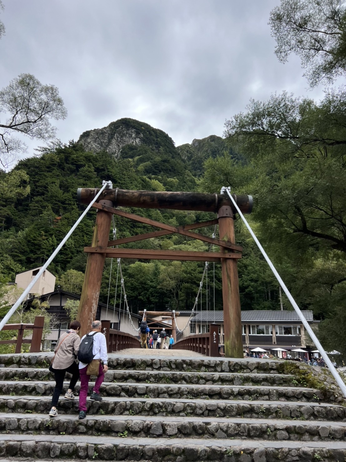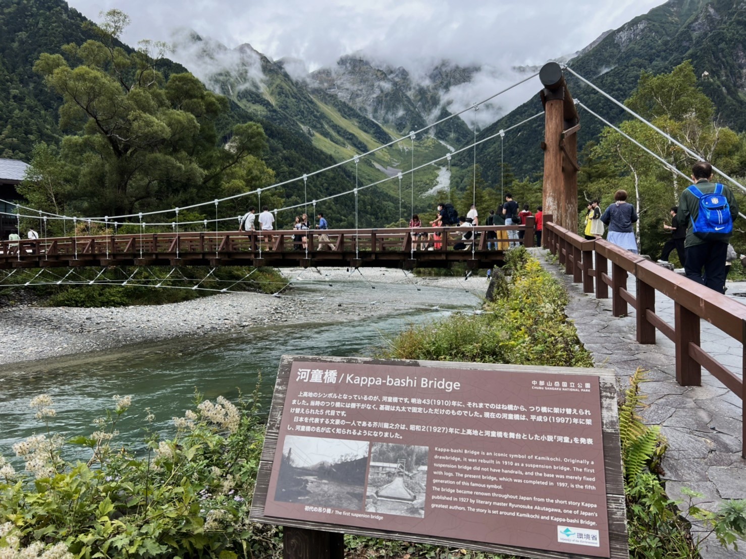 河童橋には、ハイヒールにワンピース姿の人、重装備の登山者と様々なスタイルで人が行きかいます。