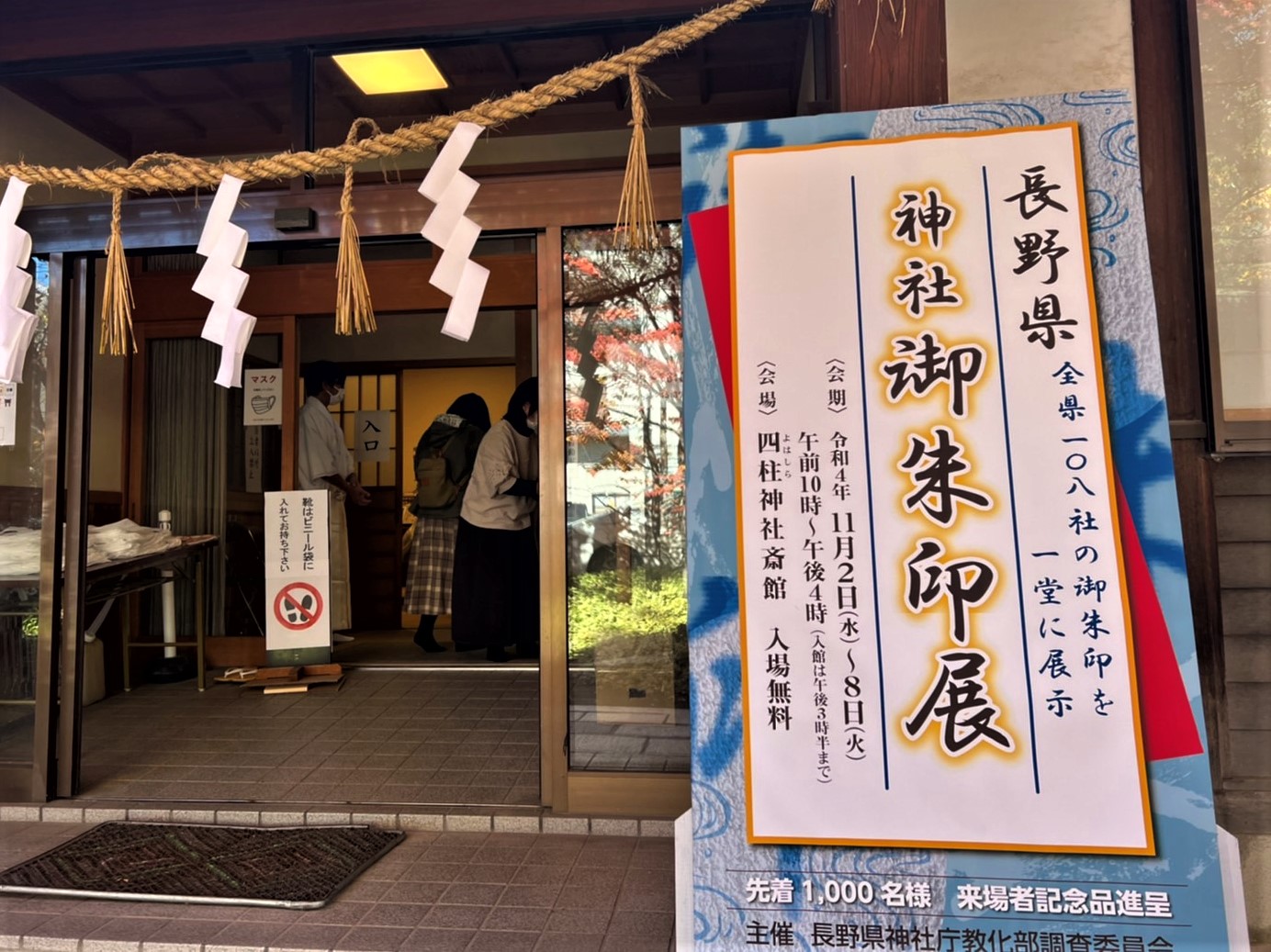 四柱神社斎館にて長野県内の神社の御朱印を集めた展示がおこなわれていました。最終日の11月8日来場しました。