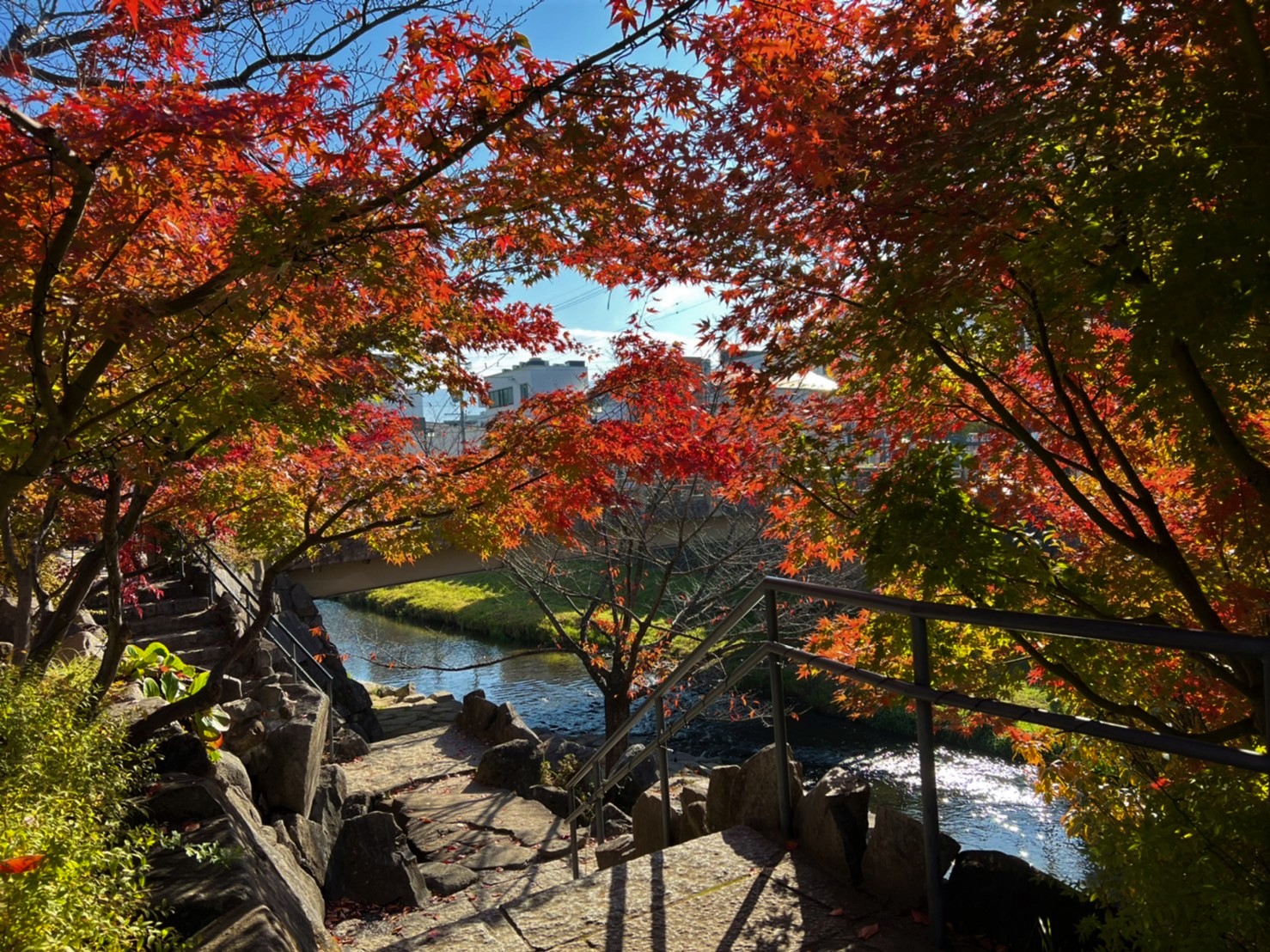 どこもかしこも松本市街地は、木々が紅く黄色く色づいています。