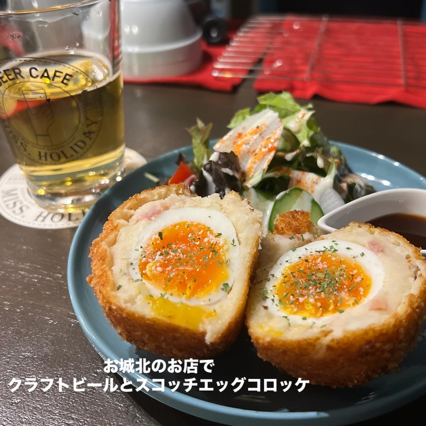 ミスホリーデーさんで向野の桜クラフトビールとスコッチエッグコロッケを頂きました。