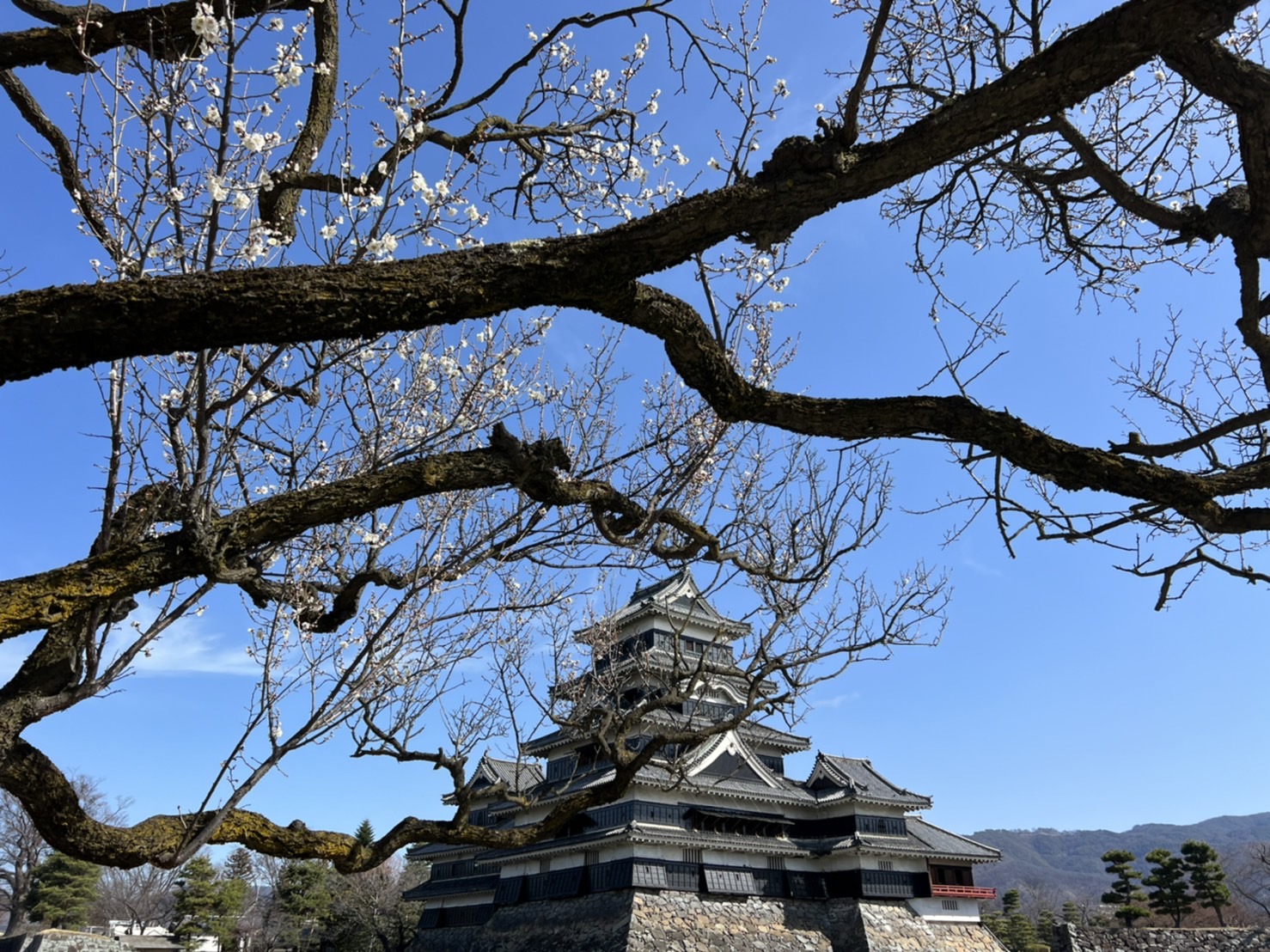 寒暖差の激しい3月 松本城の梅の花は散り始め 国宝松本城 松本さんぽ 花情報 冬を楽しむ 2023.3.15 ♥34 3月15日(水)本日も快晴 朝の気温は、氷点下 散歩道に霜柱 霜柱 朝から山も綺麗に見えました。 常念岳 日が昇ると気温はグングンと上昇していきました。 3月14日 松本城 松本城 梅園は、すでに散り始めの花もありました。 松本城梅園 白梅満開 白梅 少し遅く咲くこの木も咲いていました。 梅と松本城 高いところから眺めてみました。山並みが素晴らしい! 展望室より 国宝松本城 展望室より国宝松本城 Tweet