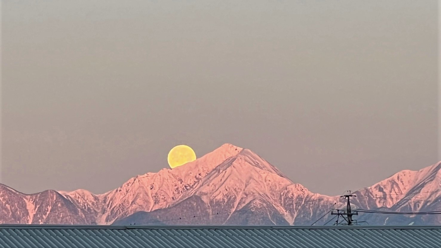 朝部屋から東の空を眺めていたら、雲ひとつない空 慌てて西の空を見るとお月さま!